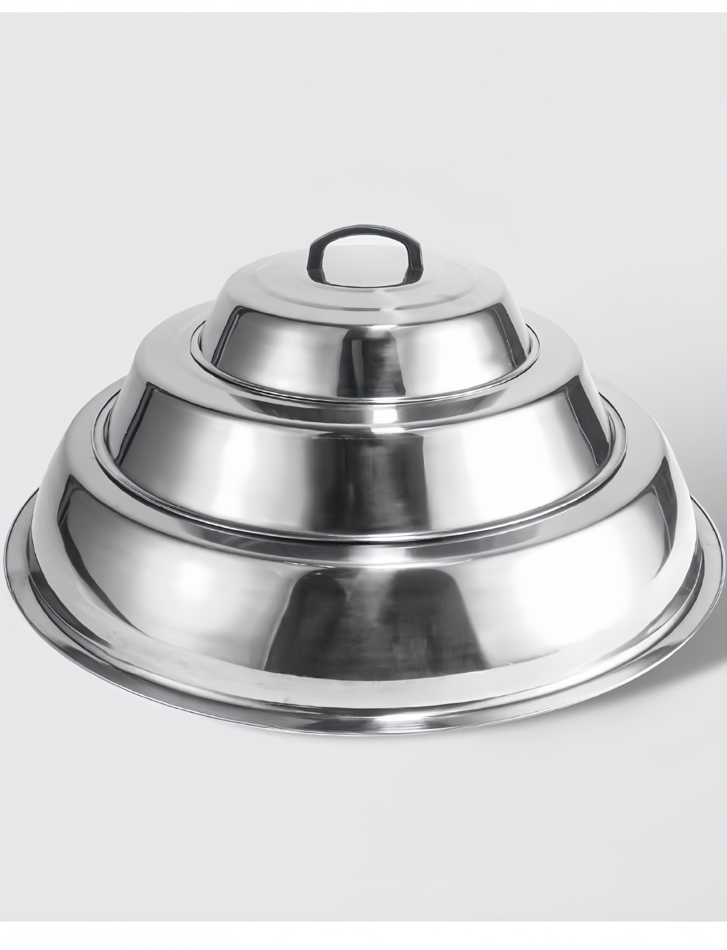 鍋蓋、釜蓋、中華鍋の蓋、昔ながらの蓋、丸い桶の蓋、ステンレス製の蓋、大きな鉄鍋の万能蓋、中華鍋の蓋