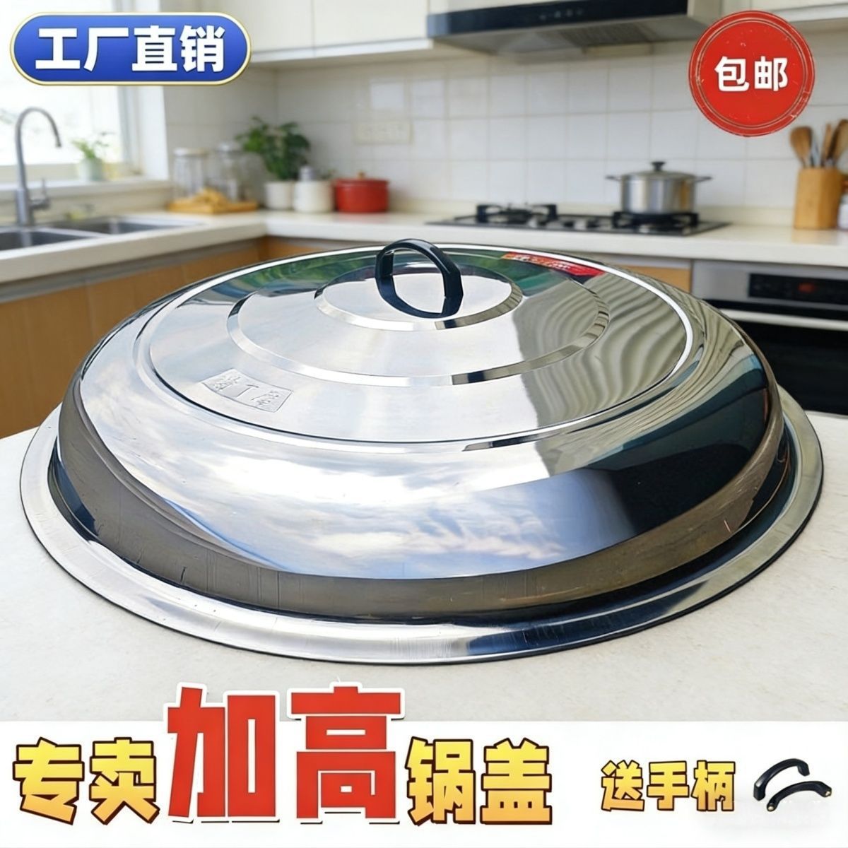 不锈钢大锅盖炒锅加高加厚锅盖子汤蒸拱形加高锅防溢防溅炒菜锅