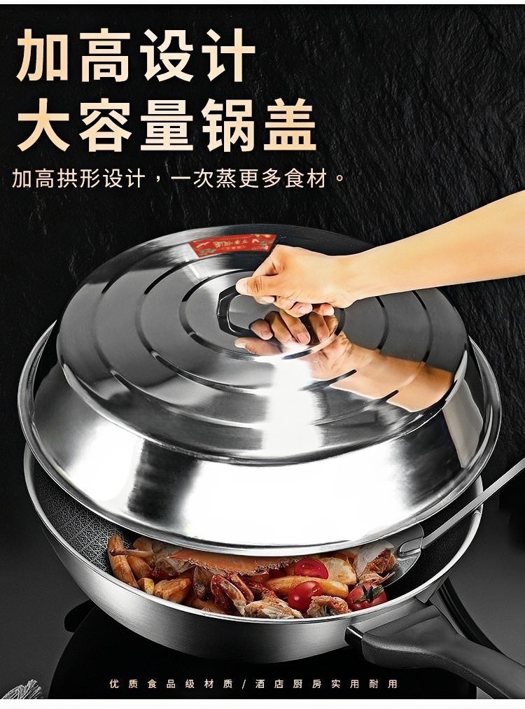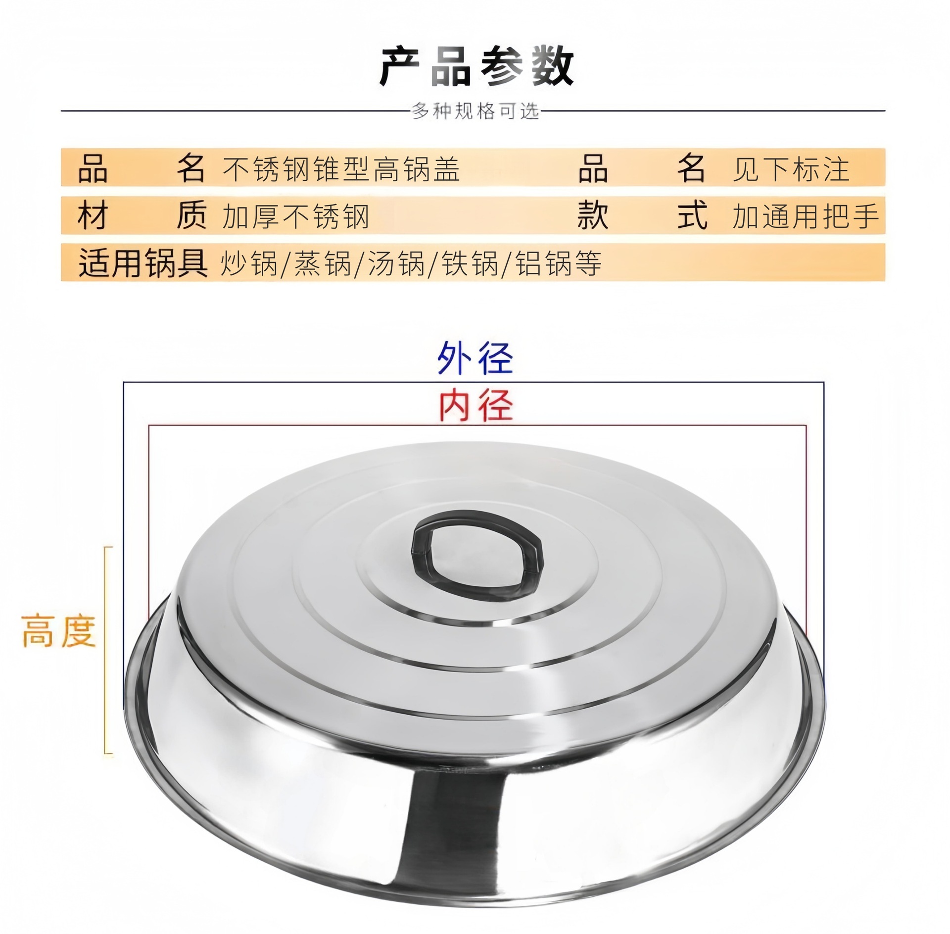 拱形锅盖不锈钢圆形炒锅加深盖子家用老式汤锅蒸锅高盖加厚大锅