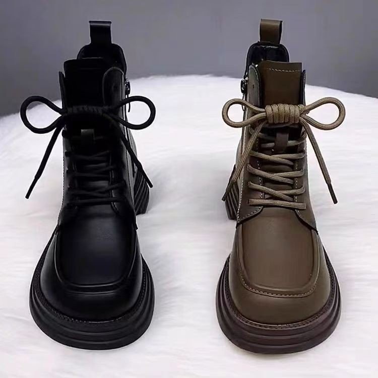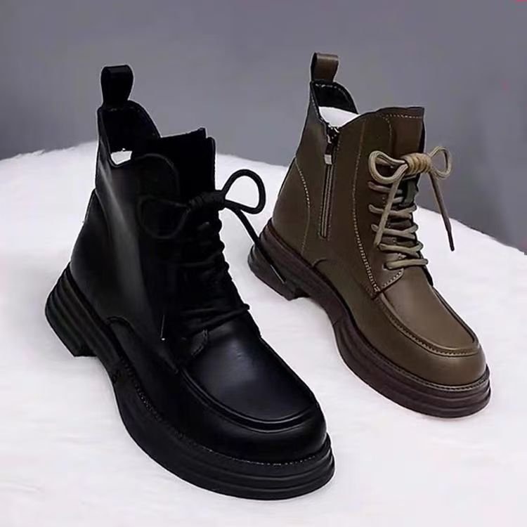 马丁靴女2025秋冬圆头平跟软皮矮靴复古百搭休闲舒适轻便保暖靴子