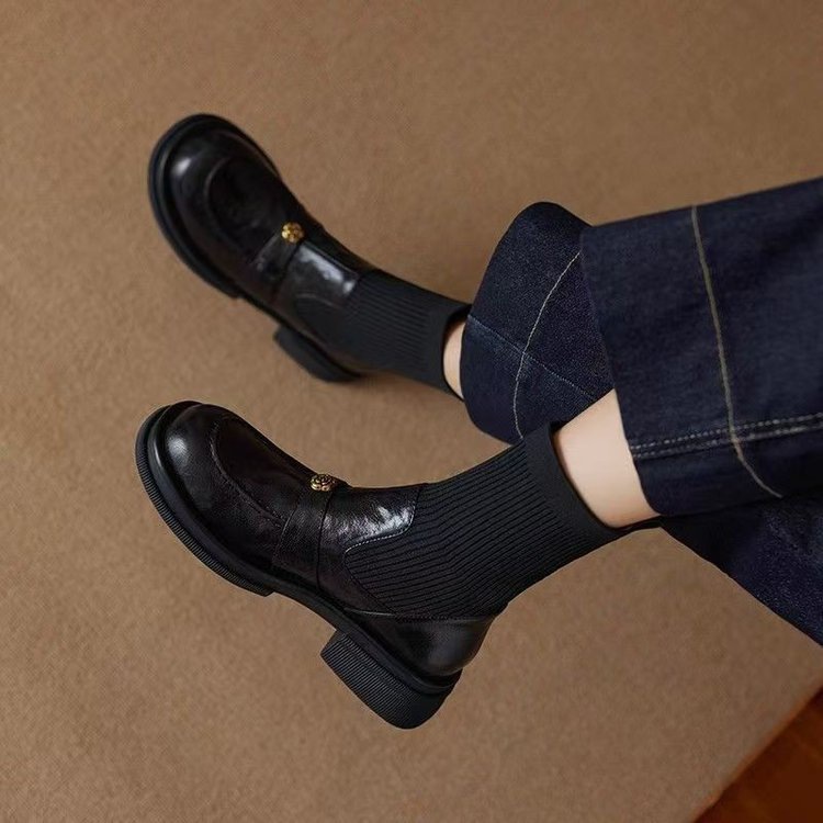 英伦风瘦瘦靴女2025秋冬季新款针织弹力袜靴平底短靴学院风乐福鞋