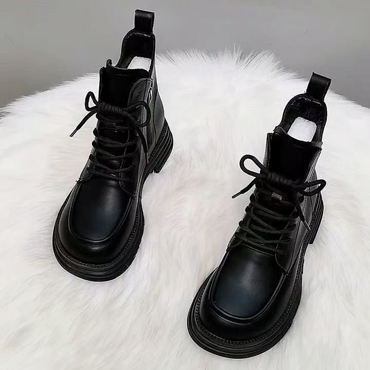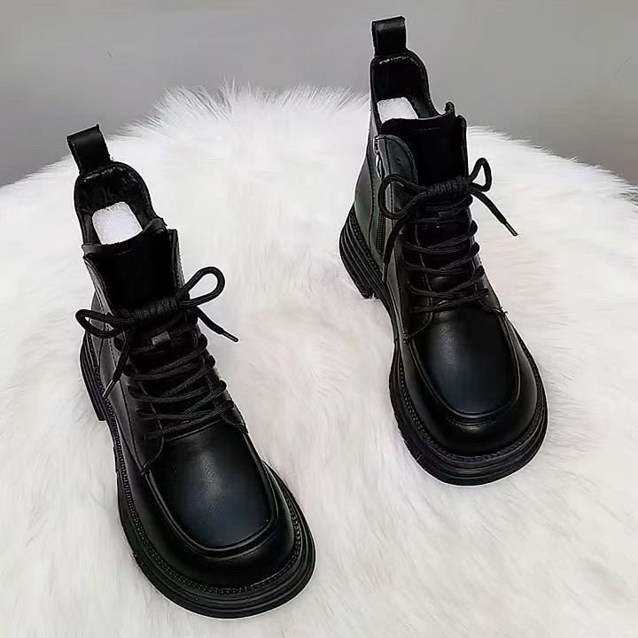 爆款软皮马丁靴女2025秋冬新款厚底靴子增高加绒英伦风短筒单棉靴