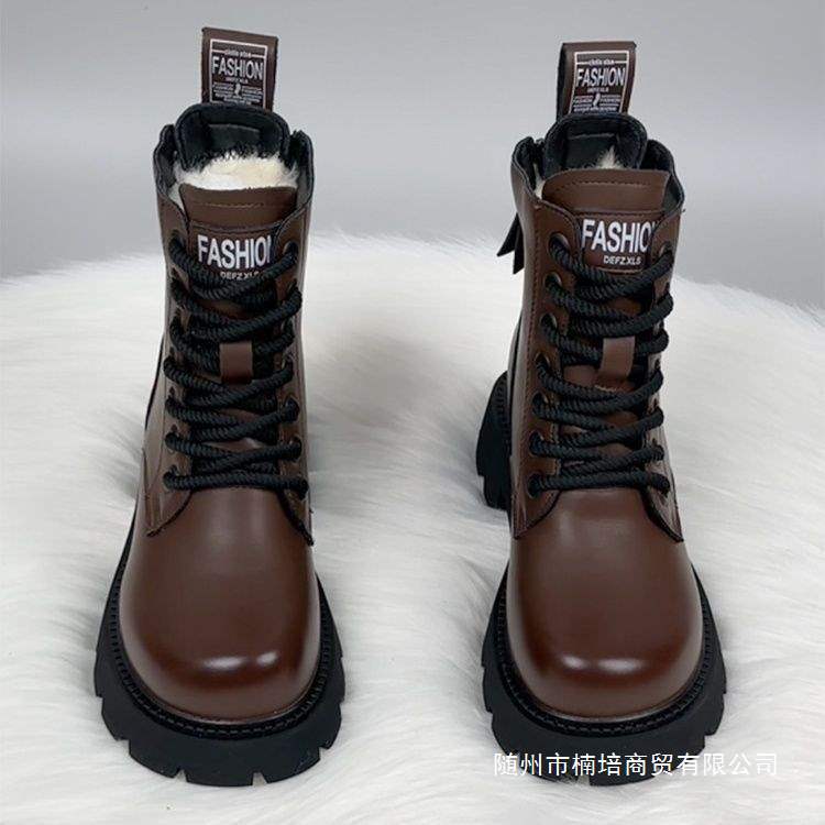 软皮加绒马丁靴女棉靴2025秋冬新款厚底保暖短靴平底百搭加厚棉鞋