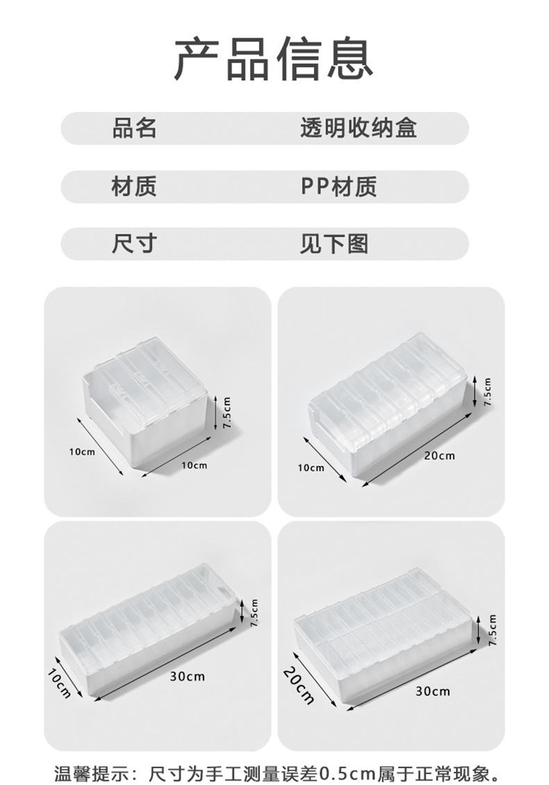 颜色 3格(10*10*7.5CM),7格(20*10*7.5CM),11格(30*10*7.5CM),22格(30*20*7.5CM)