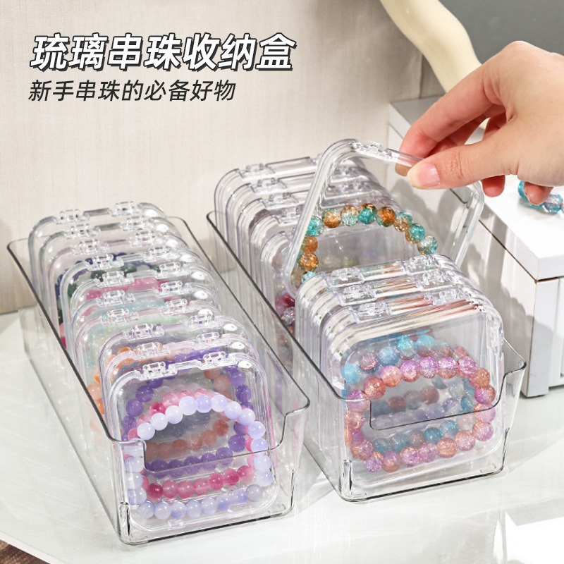 防氧化水晶琉璃手串收纳盒透明手链手镯美甲展示盒桌面饰品储存盒