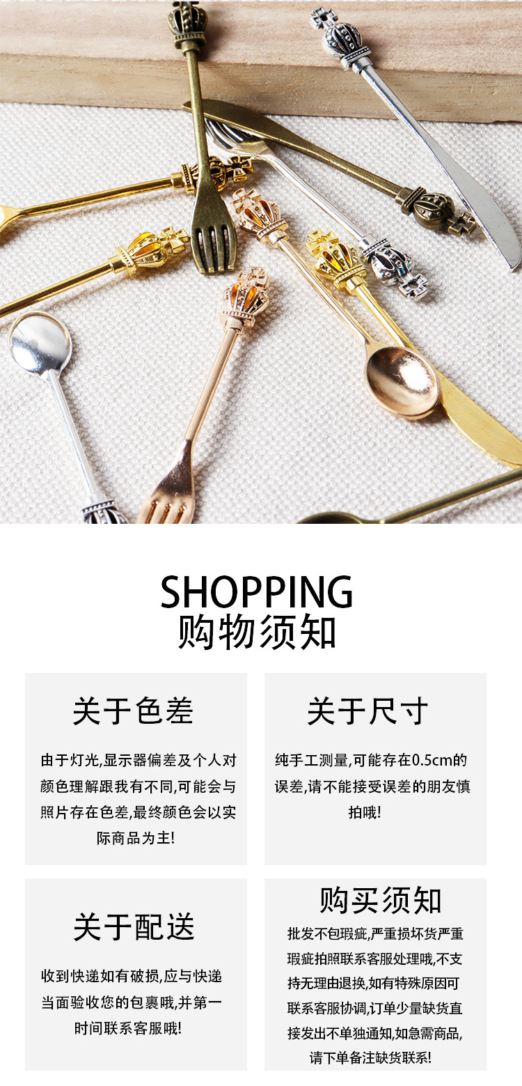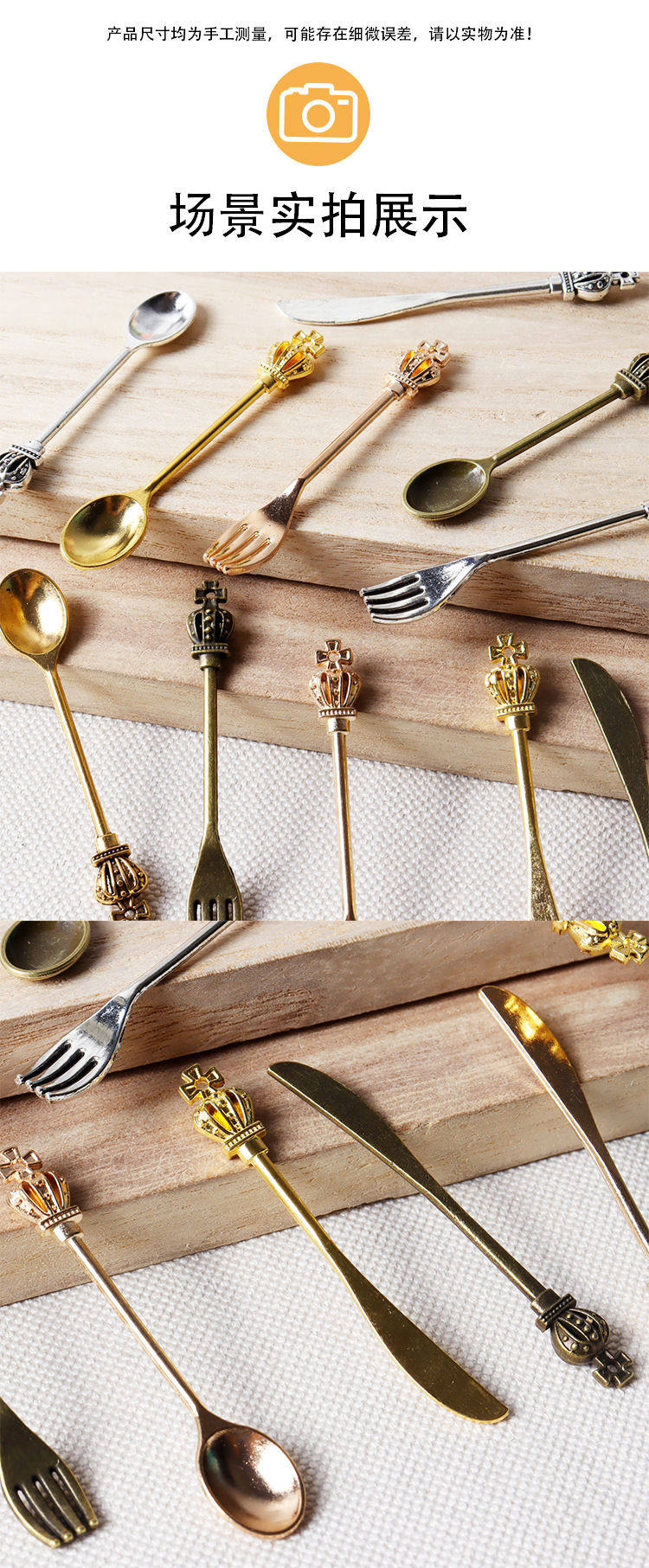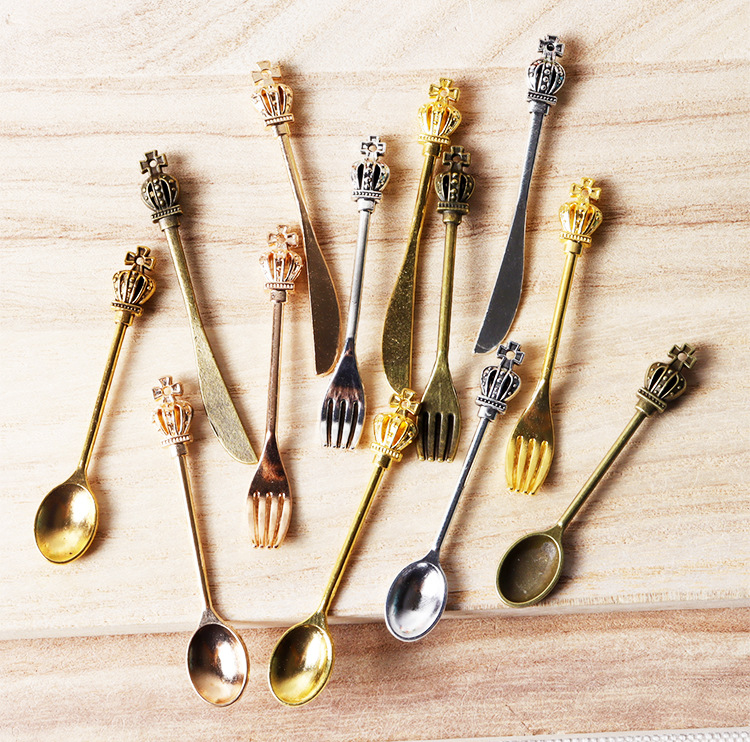 仿真厨房餐具装饰件 刀叉勺子皇冠吊坠 DIY百搭项链吊坠 手链配件