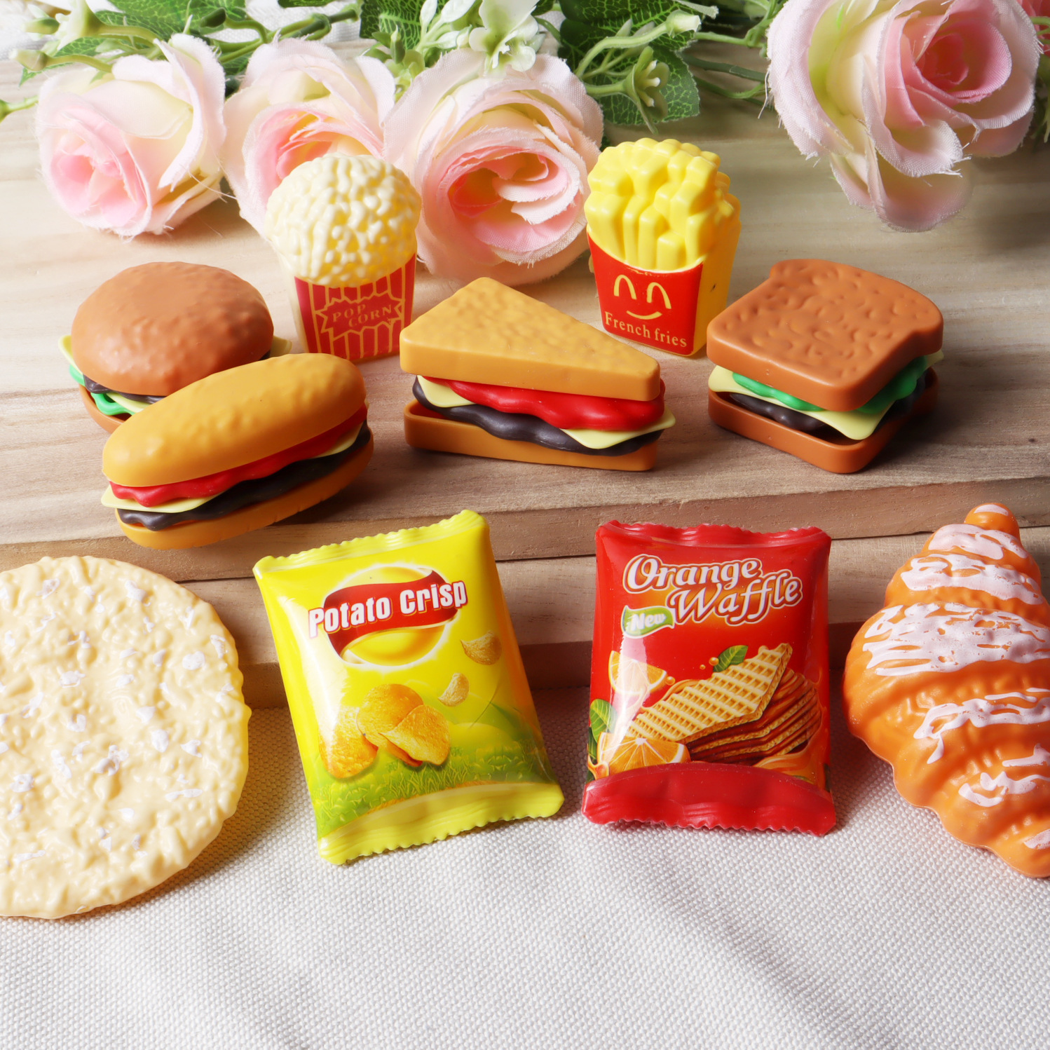 微缩仿真食玩配件汉堡薯片饼干发饰搞怪可爱有趣一元模式地摊批发