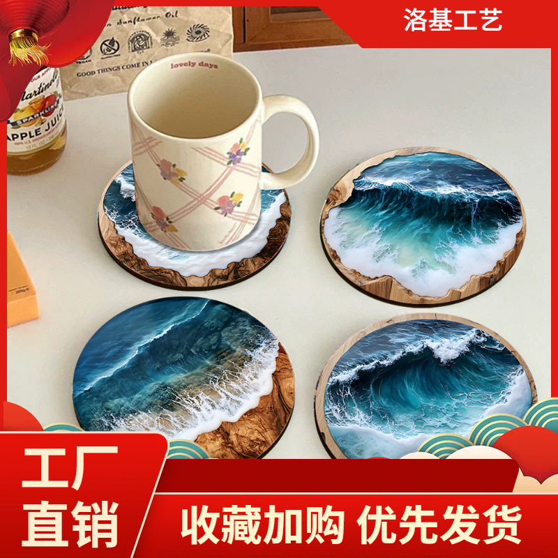 クロスボーダー新しいブルーオーシャンラウンド木製コースターファミリーカフェパーティーテーブルドレスアップコースタープレースマット