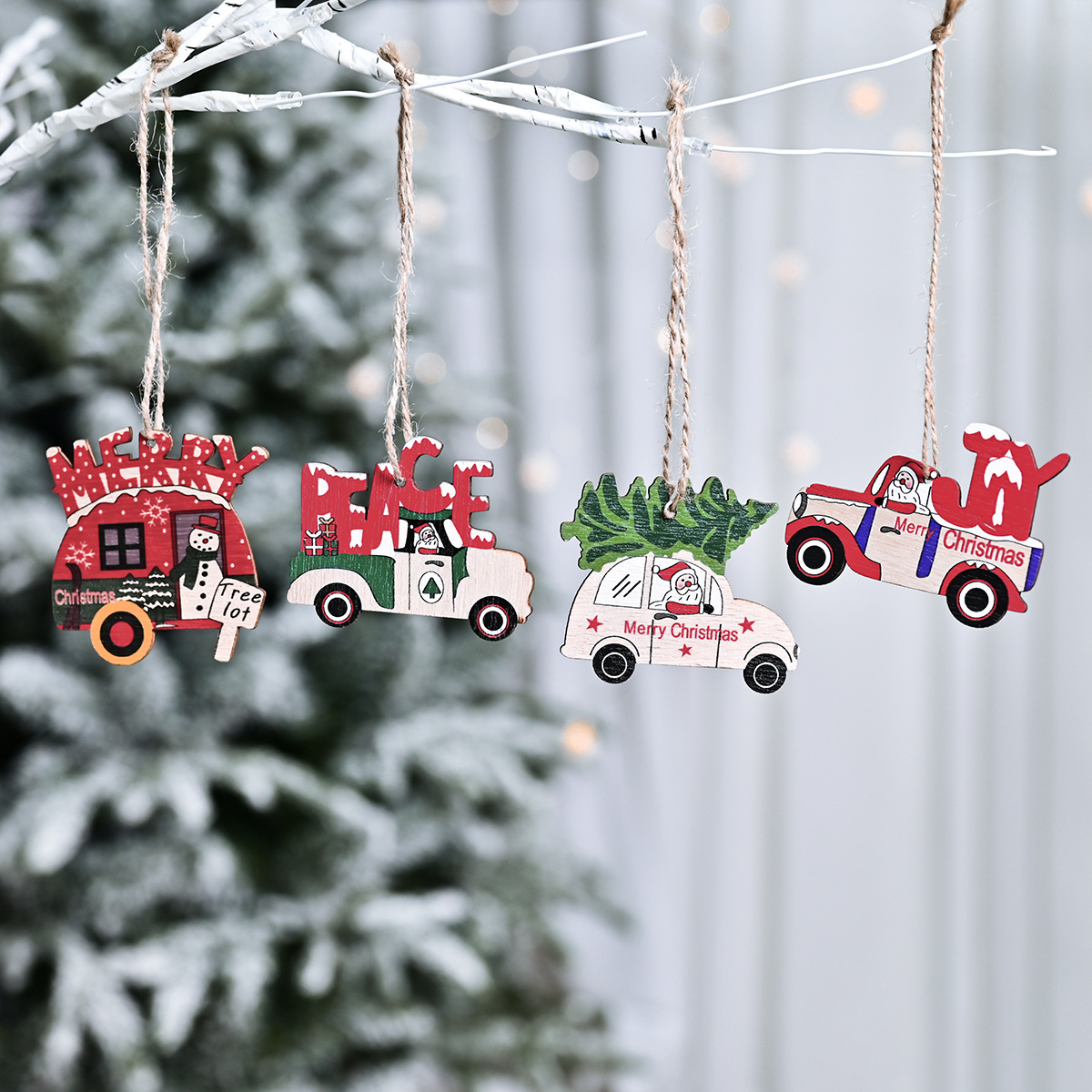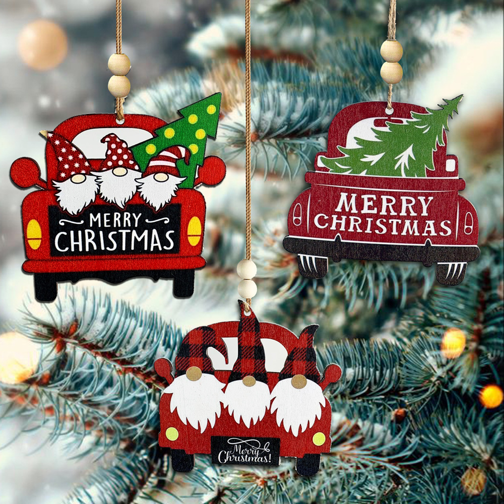 絶妙なクリスマス装飾ペンダント木製クラフトカラー印刷装飾品クリスマスツリー小さなペンダントノームカー