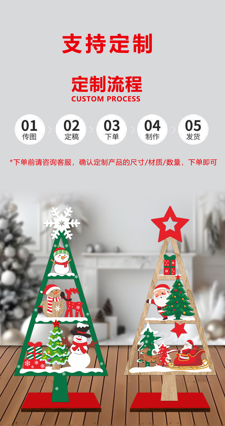 圣诞节装饰品木质圣诞树桌面摆件 派对节日氛围布置创意立牌 装饰