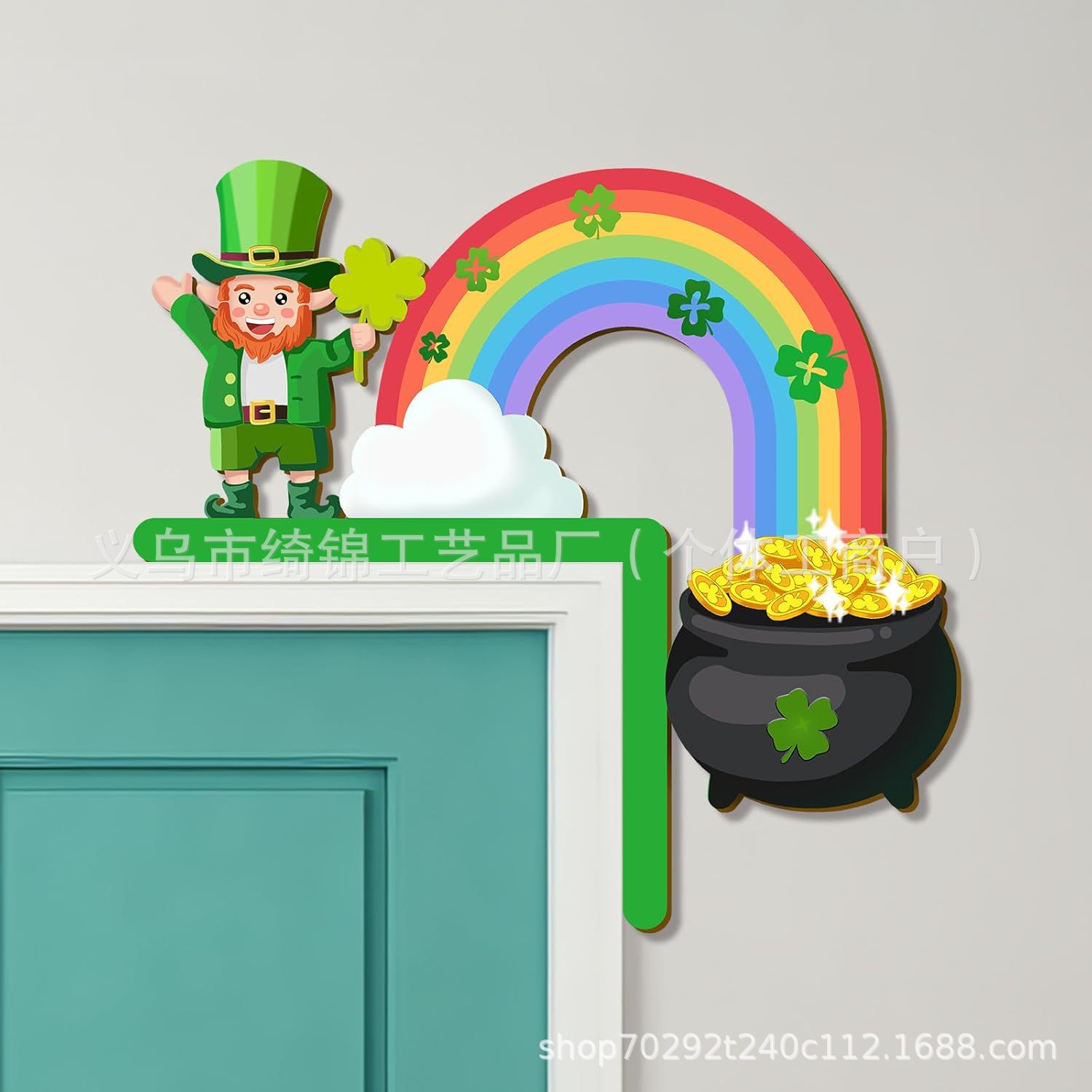圣帕特里克节门框角爱尔兰木制礼品绿色三叶草圣帕特里克节装饰