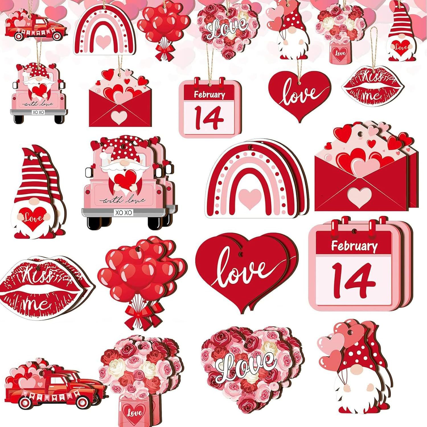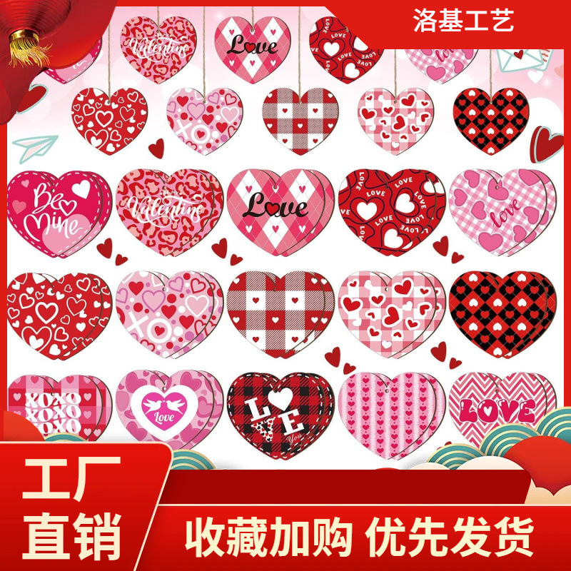 40件情人节木质装饰情人节心形挂饰带绳浪色系列情人节树派对装饰