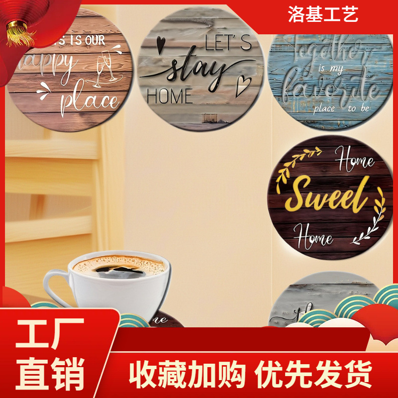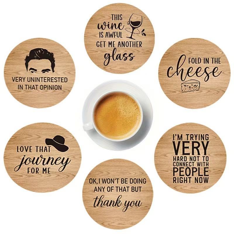 国境を越えた新しい木製シンプルなコースター 6 個コースター楽しい友人コーヒーテーブル保護パッドラウンド装飾