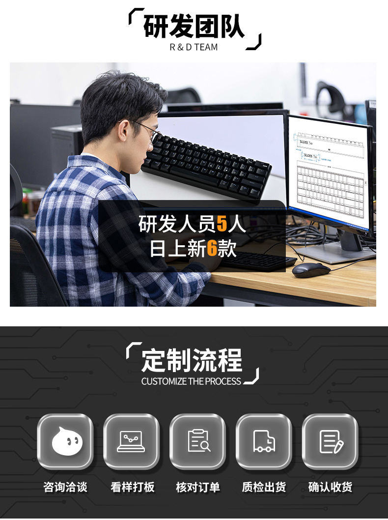 批发机械键盘Holy6镂空铝壳 mad磁轴wooting6 he+外壳gh/ace68