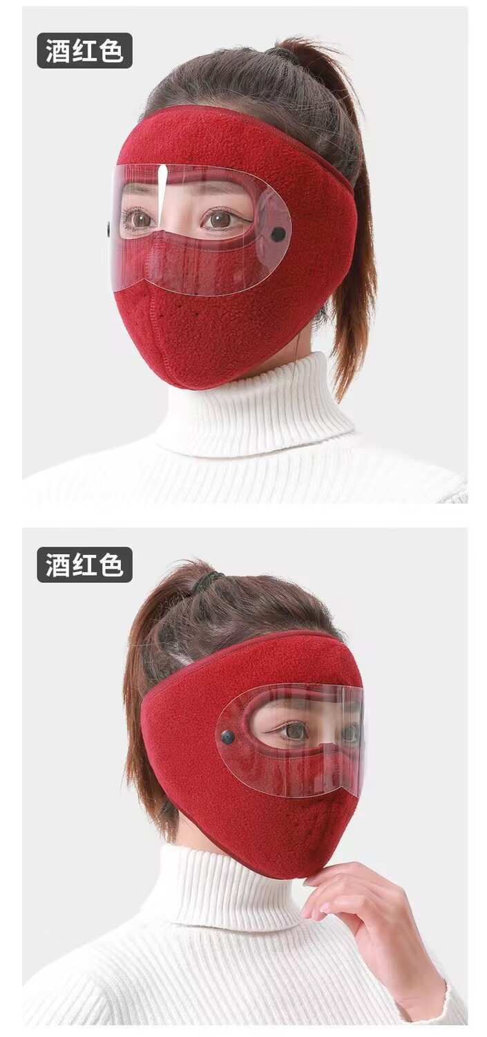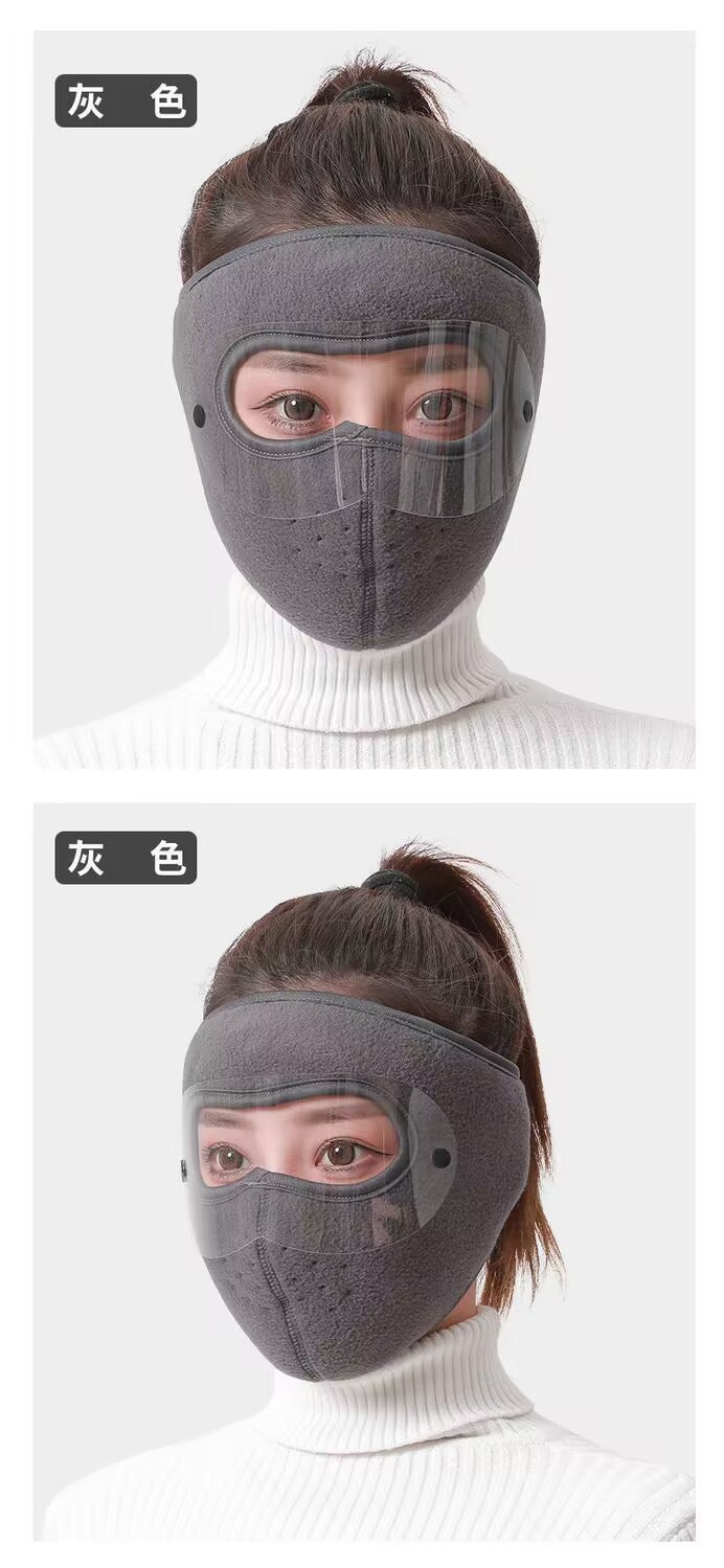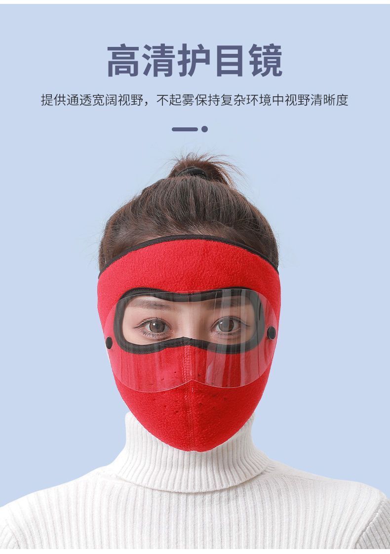 冬季保暖防风防尘全脸口罩男女款护目镜护耳加厚加绒骑行防寒面罩