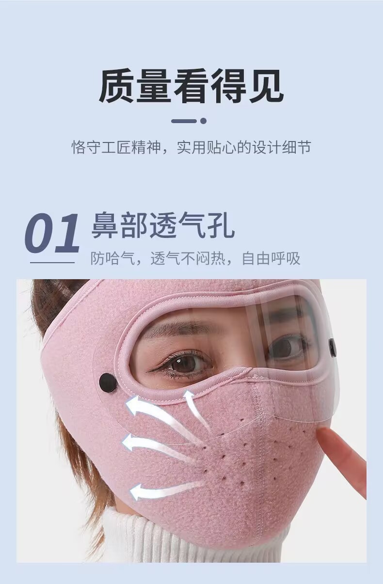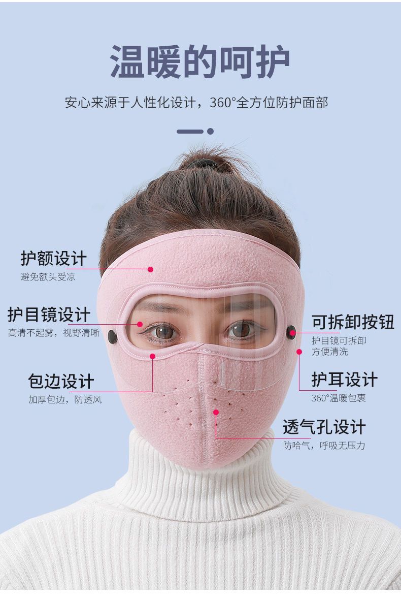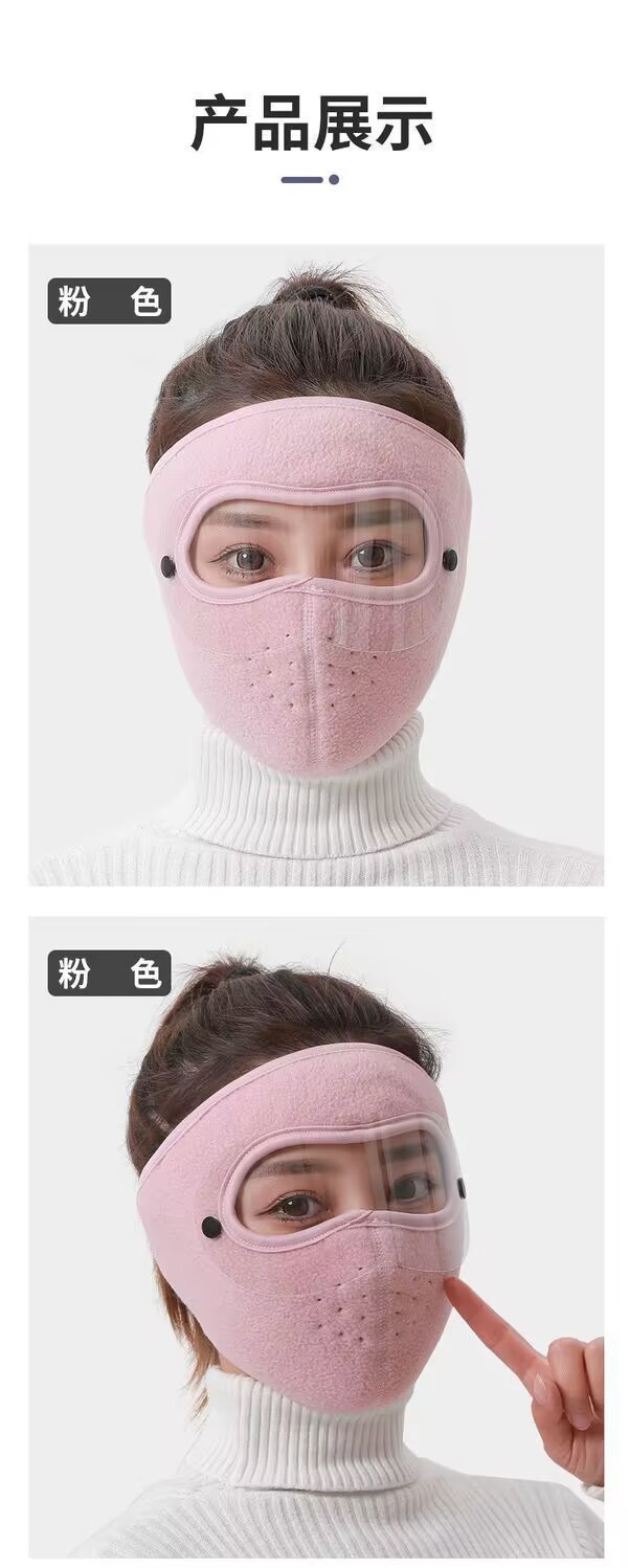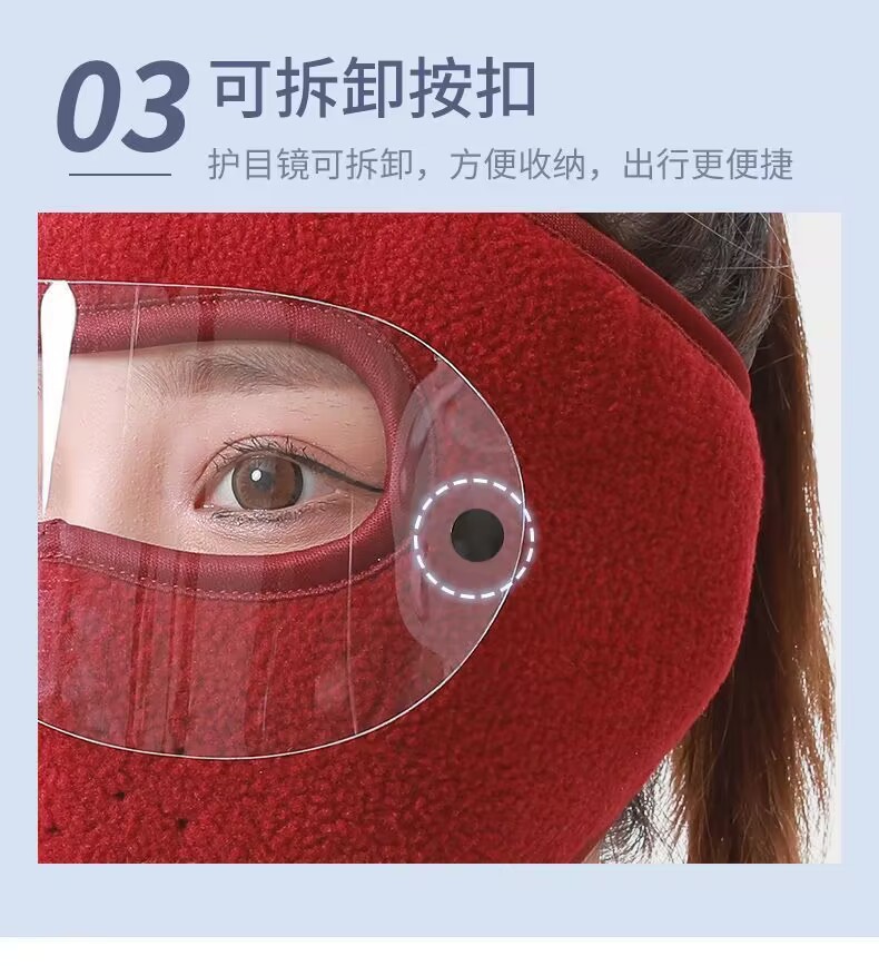 秋冬保暖面罩加绒加厚口罩耳罩一体护目镜骑行防风防寒防冻头套罩
