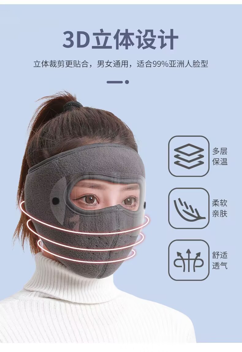 面罩冬季男女保暖全脸护目户外寒风防冻护耳防尘加厚护脸骑行口罩