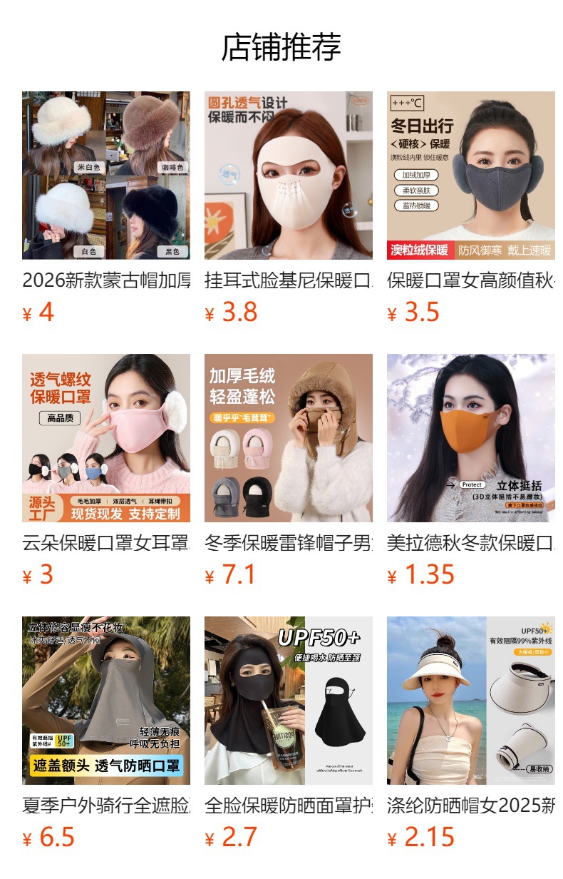 美拉德秋冬款保暖口罩骑行防风御寒无痕显瘦小脸型可水洗护眼角