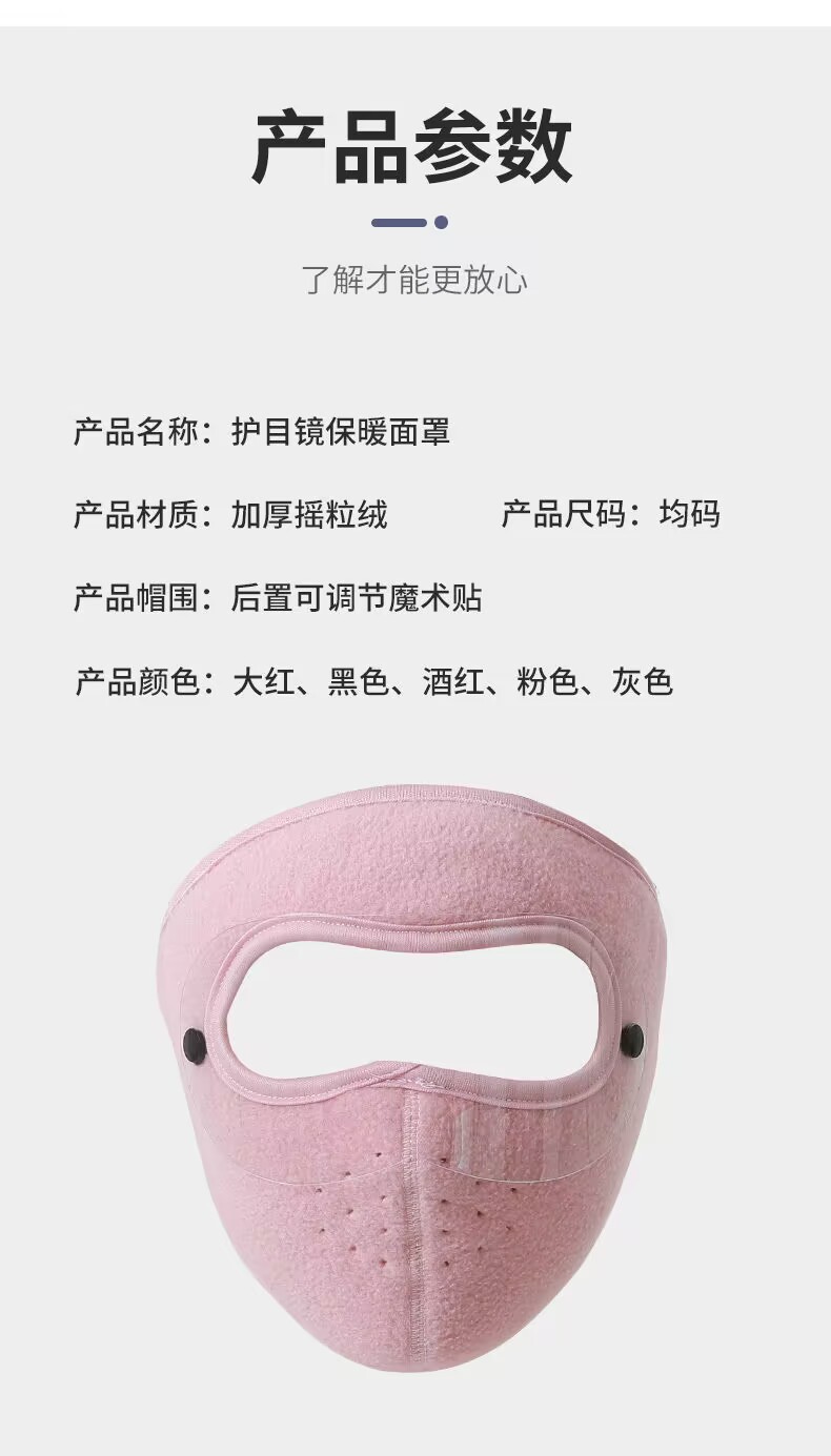 颜色 黑色-短款,灰色-短款,蓝色-短款,粉色-短款,酒红色-短款,藏青-短款,酒红色【长款带护目镜】,蓝色【长款带护目镜】,藏青【长款带护目镜】