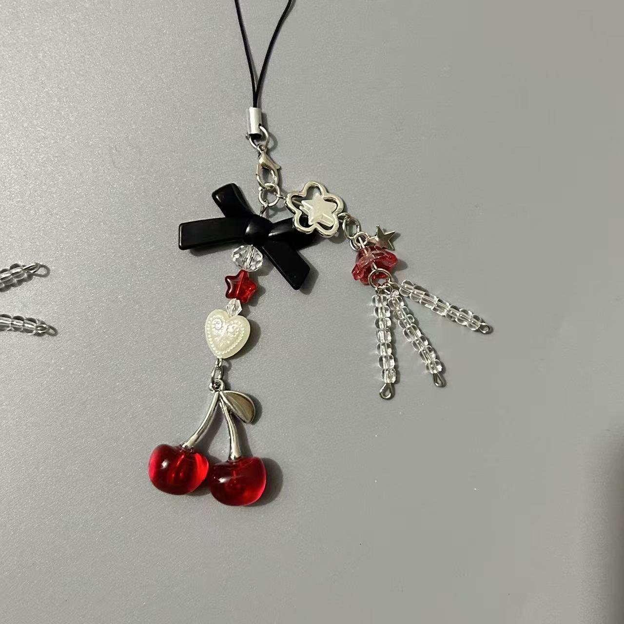 オリジナルの甘いクールな少女y 2k個性的な原宿風さくらんぼ蝶結びのストラップ