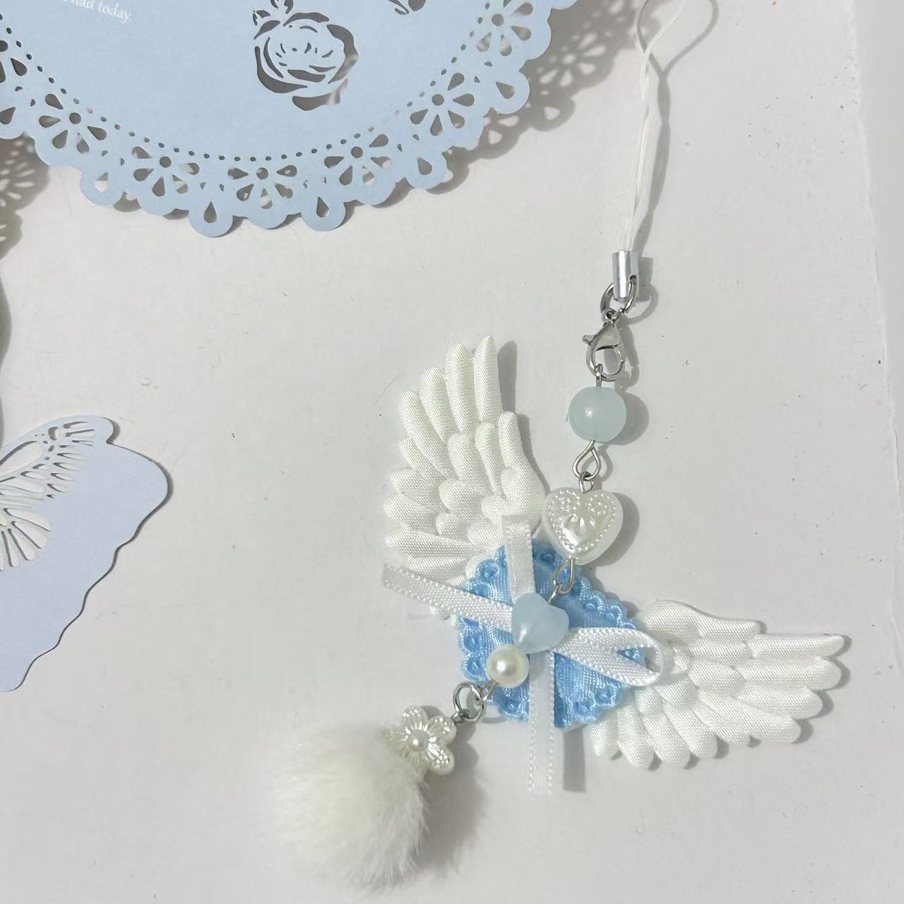 原创翅膀爱心钥匙挂件Y2K天使翅膀咕本挂件小众包配件少女挂饰