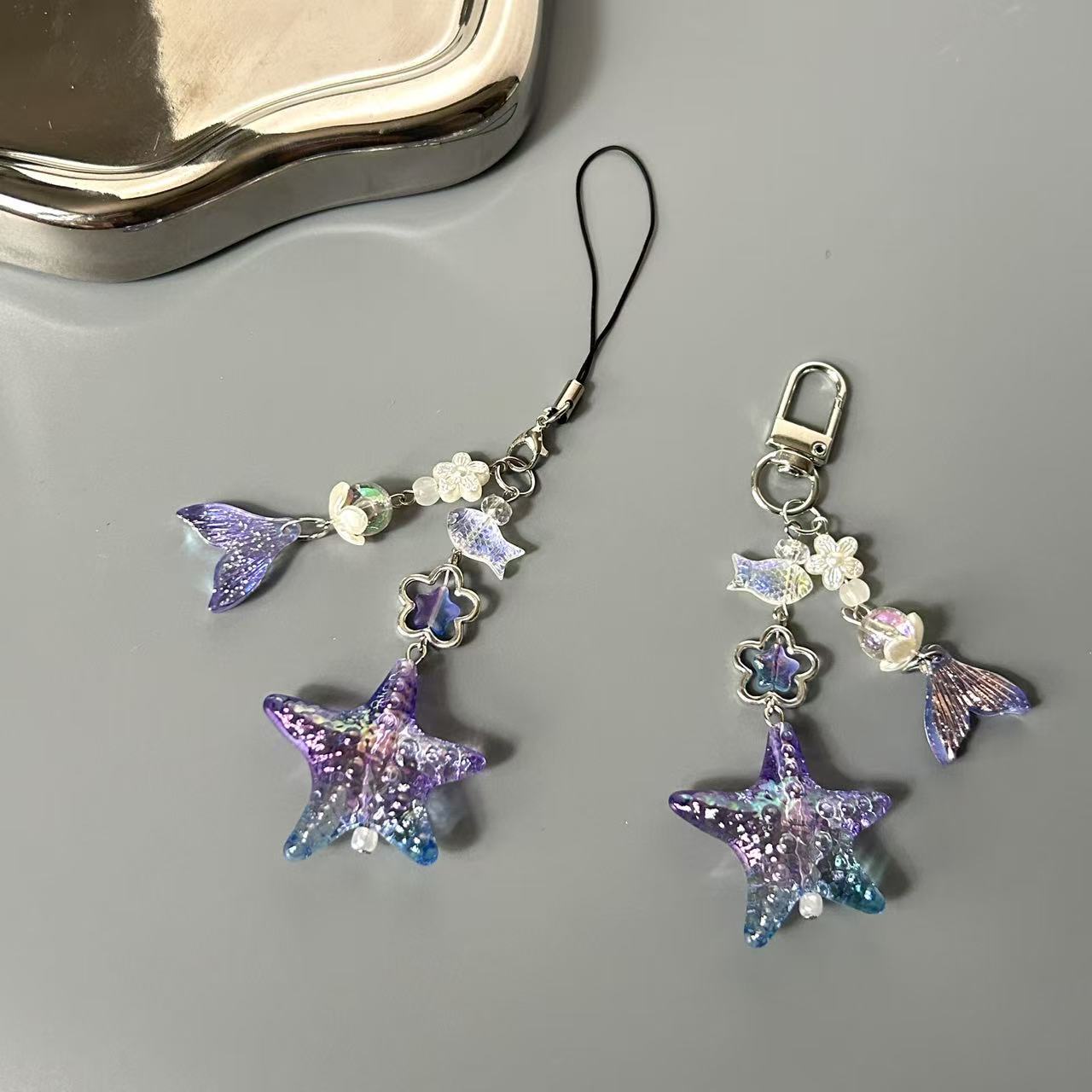 ins风美人鱼手机链可爱海洋生物手工串珠短链鱼尾包包钥匙扣挂饰