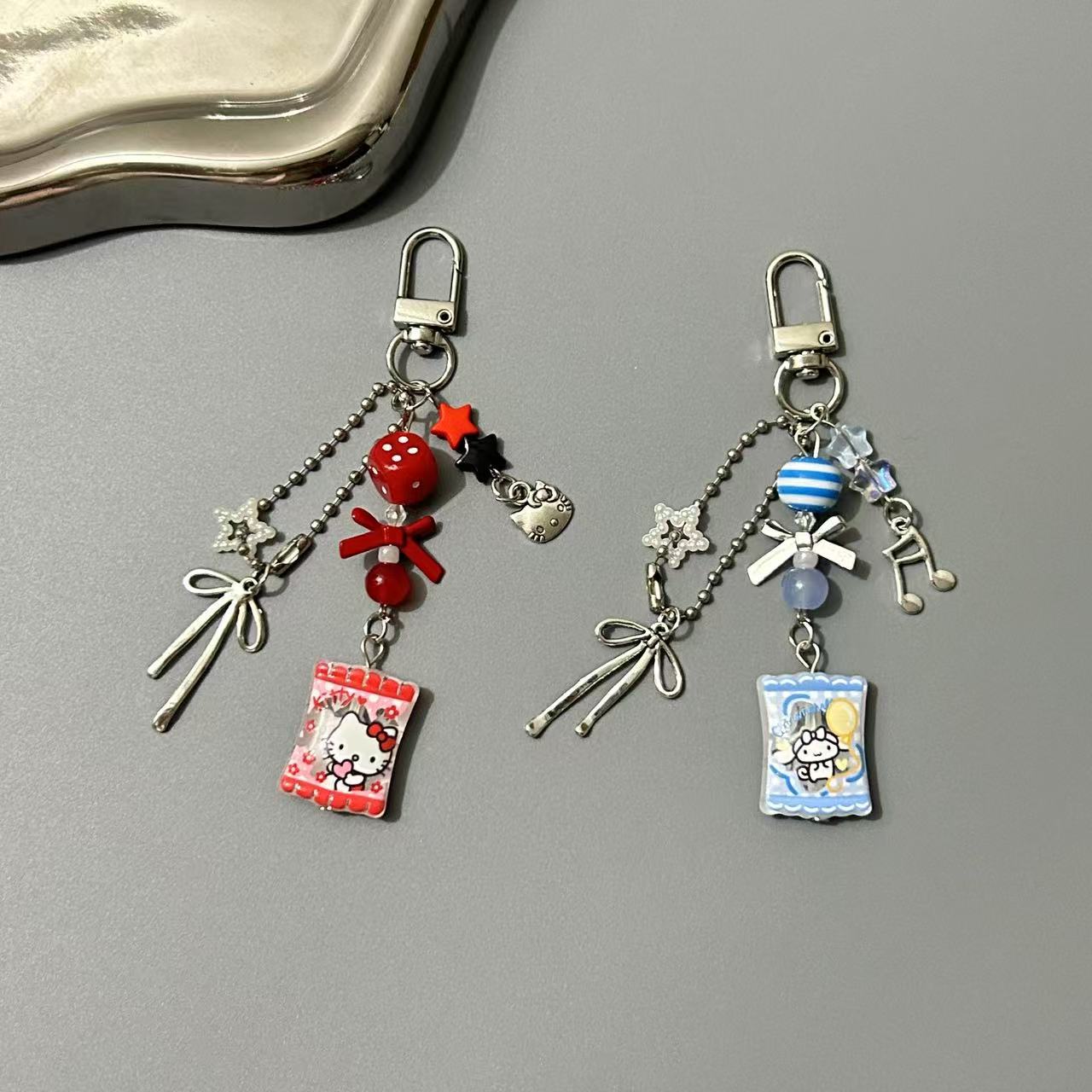 漫画風KTガールハートビーズ携帯ストラップバッグ飾りCCDペンダント星蝶結び親友ギフトins風