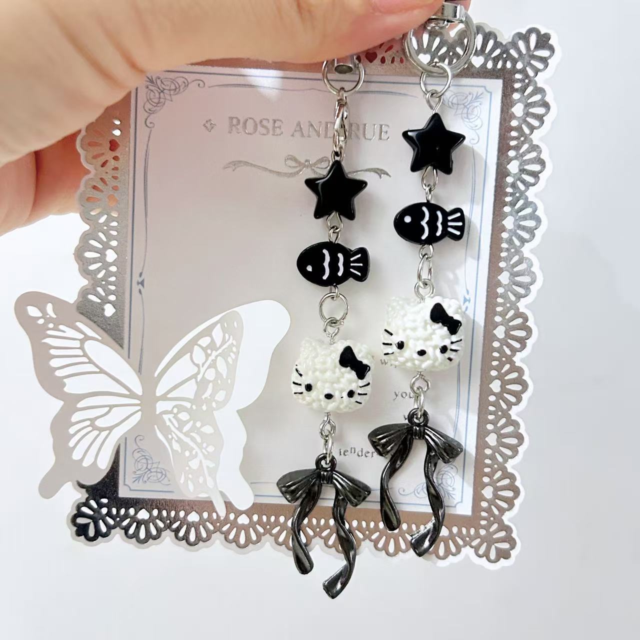 甘いクールなレーザー蝶のクロスの針の携帯電話のチェーンinsの復古のy 2k千年風の鍵はかばんを掛けて飾ります。