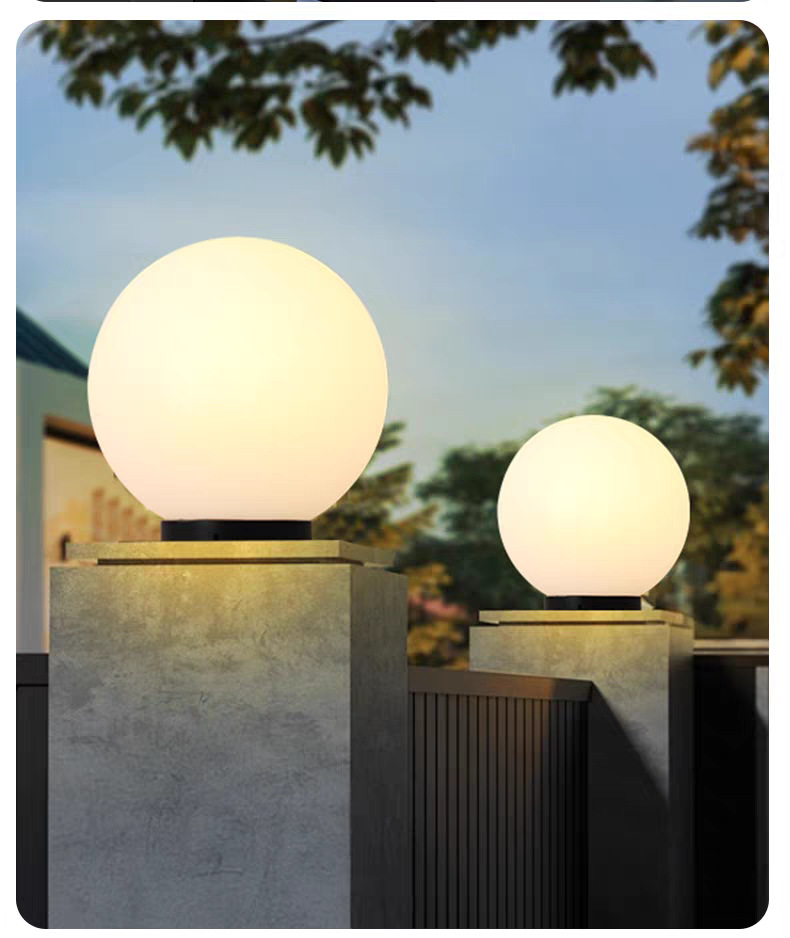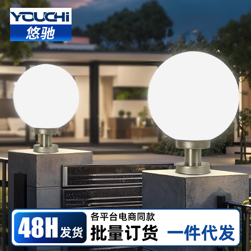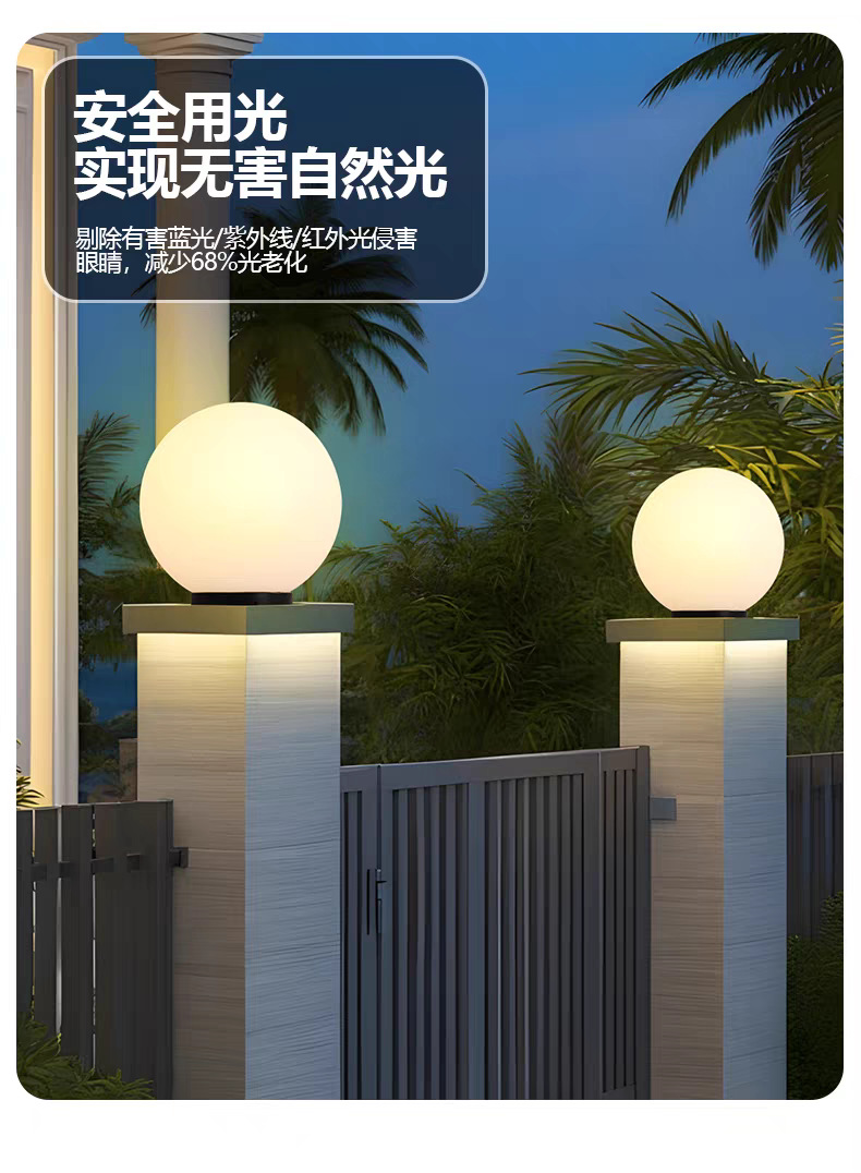 太阳能柱头灯户外庭院围墙灯球形门墩圆球景观路灯别墅大门柱子灯