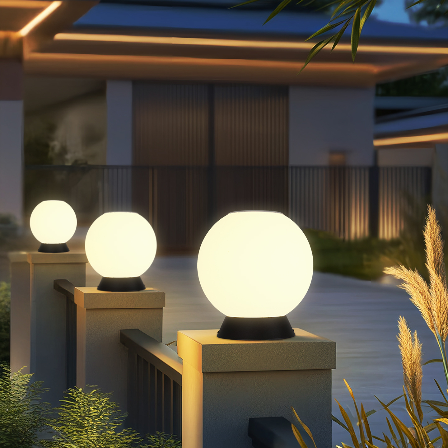 太陽エネルギーの柱のヘッドライトの屋外の防水公園の団地の塀の柱の明かりの別荘の庭の玄関の丸い球形の柱の明かり