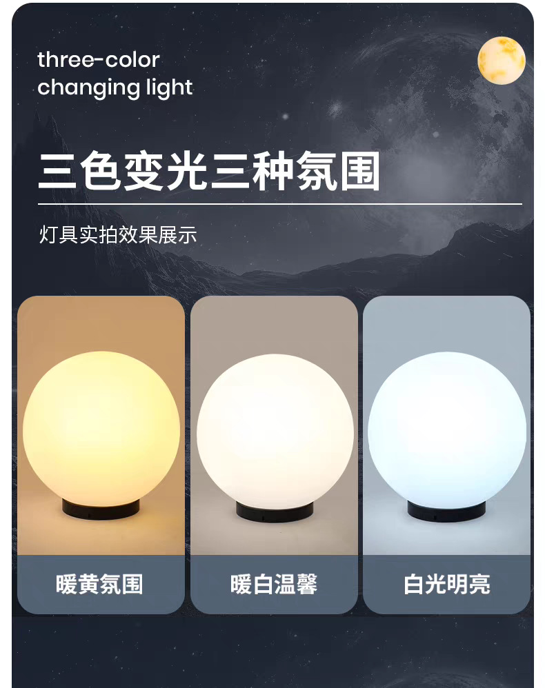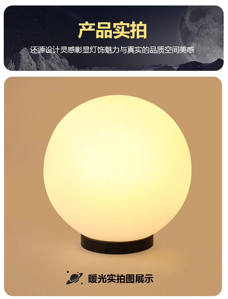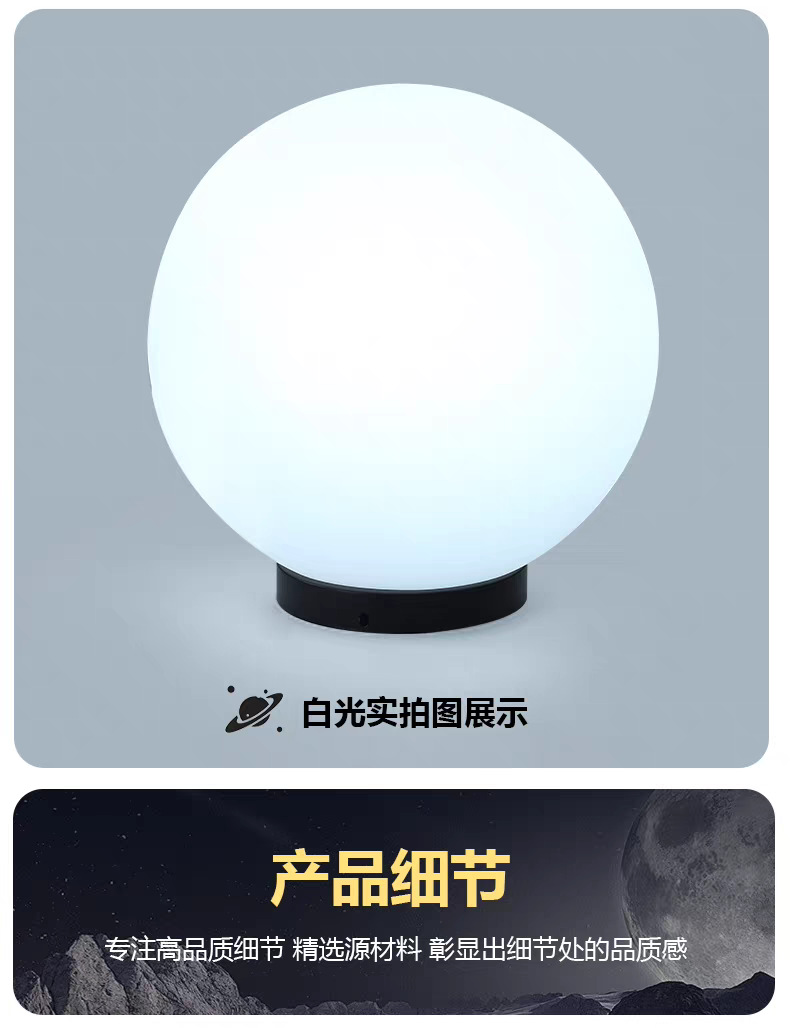 户外庭院太阳能柱子灯别墅花园围墙月球柱头灯大门门柱圆球景观灯