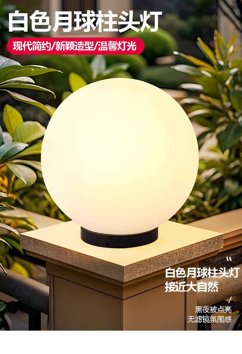 新型太陽光柱ヘッドライト屋外防水ボール月球灯庭花園別荘塀大門柱灯