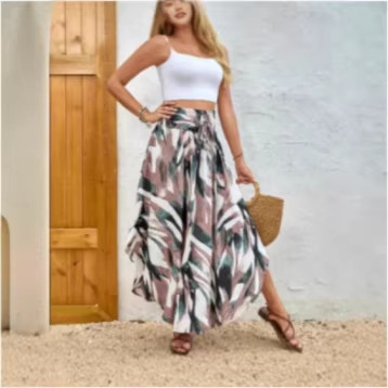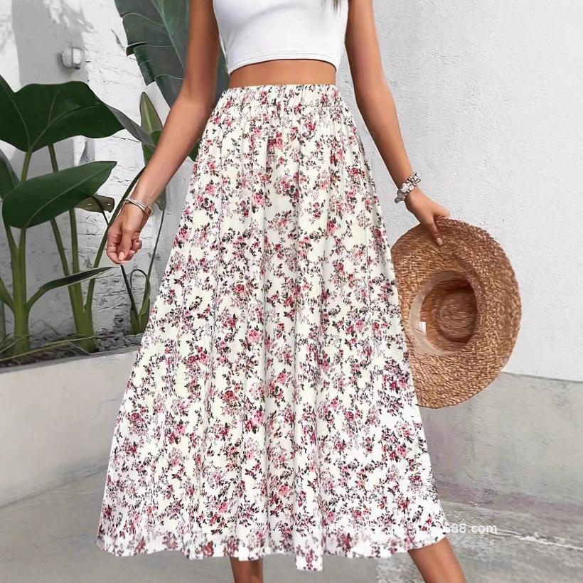 2025年夏の新作クロスボーダー外国貿易プリントエレガントな大きな裾のスカート