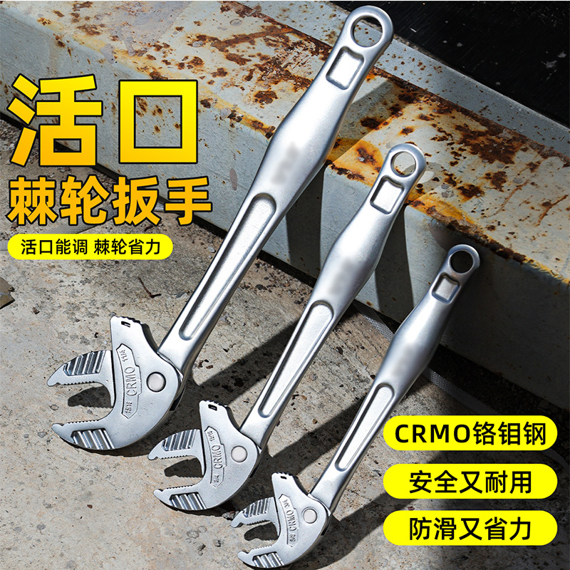 新款蟹钳式活动扳手多功能快速自适应仿棘轮工业级大开口扳手工具