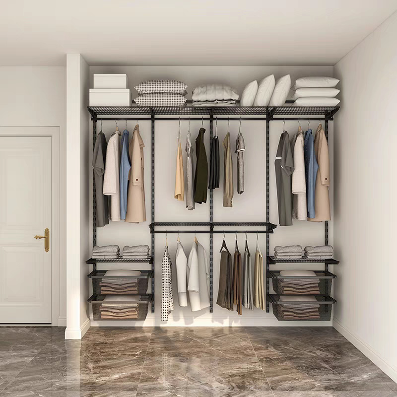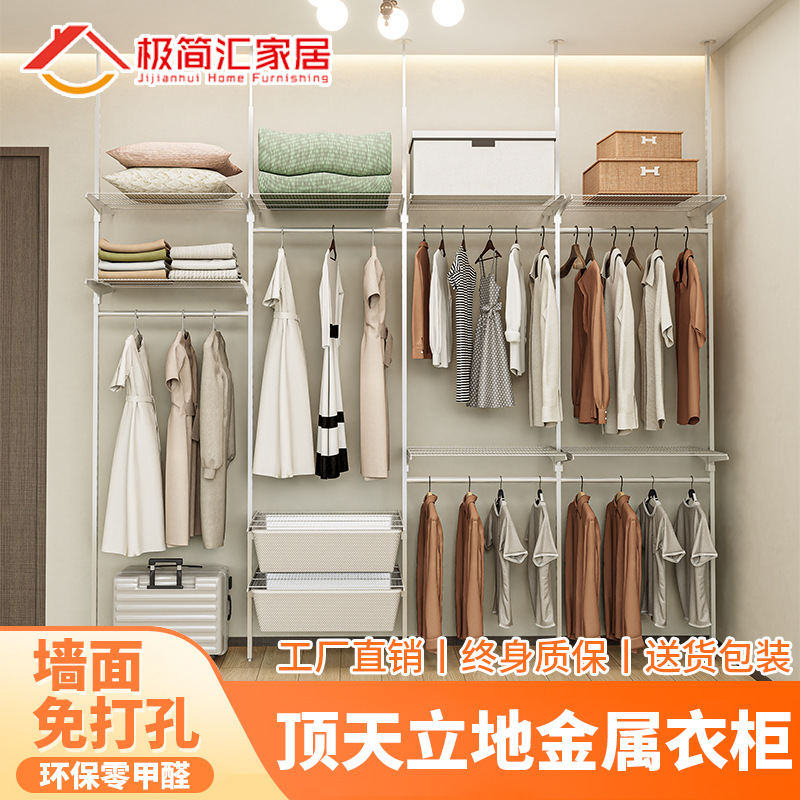 オープンクローゼット壁シンプルなワードローブ組み合わせ壁掛け家全体の収納フレームワードローブ金属ワードローブ