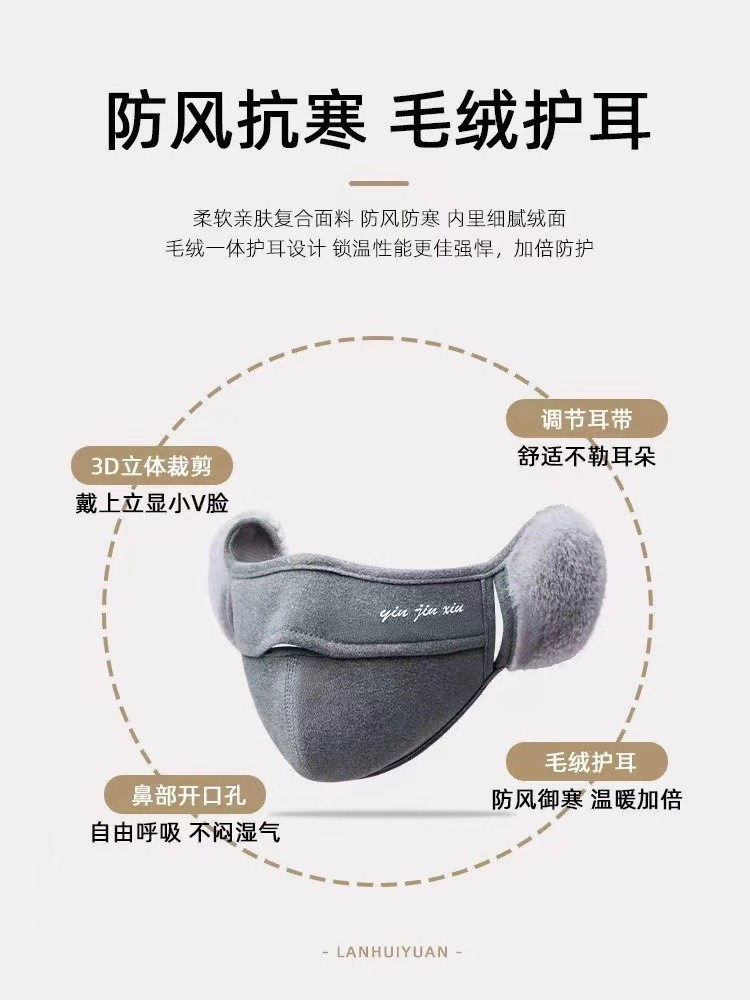 新款保暖口罩秋冬耳套护耳毛绒耳罩季防寒骑行挡防风男女面罩德绒