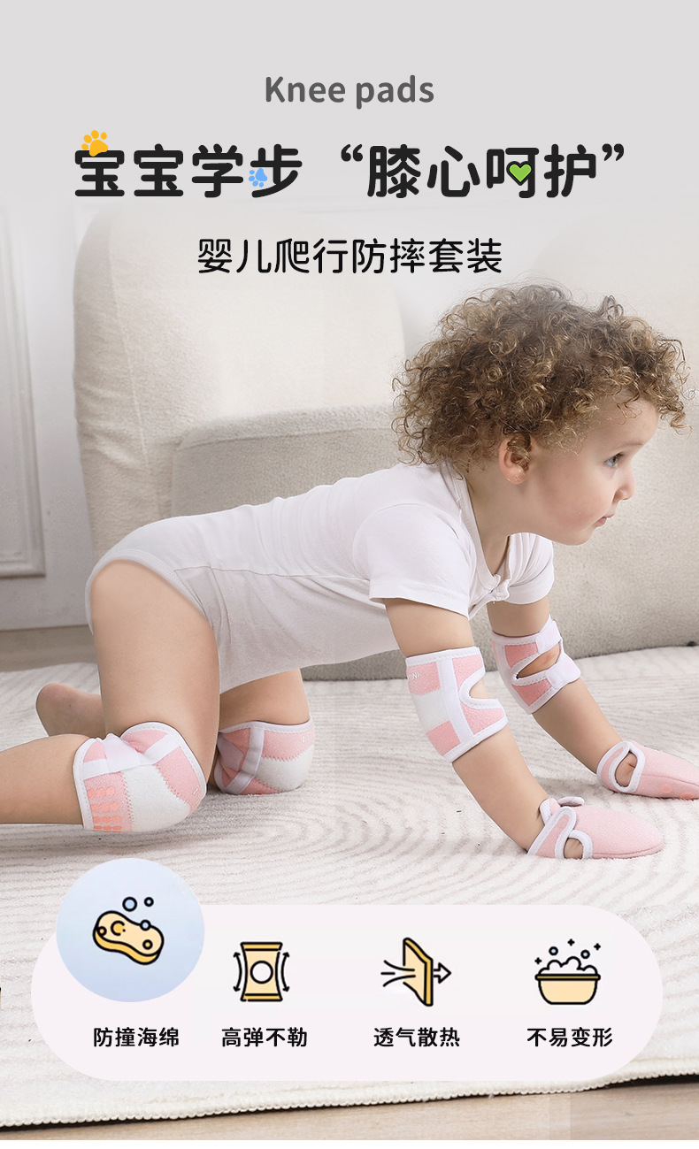 宝宝爬行护膝婴儿护肘护手掌防滑专业保护装备护具可调节护膝透气