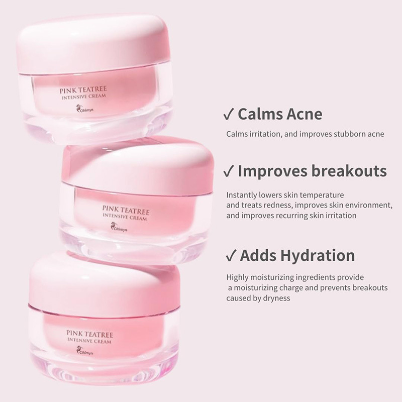 跨境粉色茶树滋润面霜补水保湿嫩粉平滑肌肤抚平细纹胶原面霜