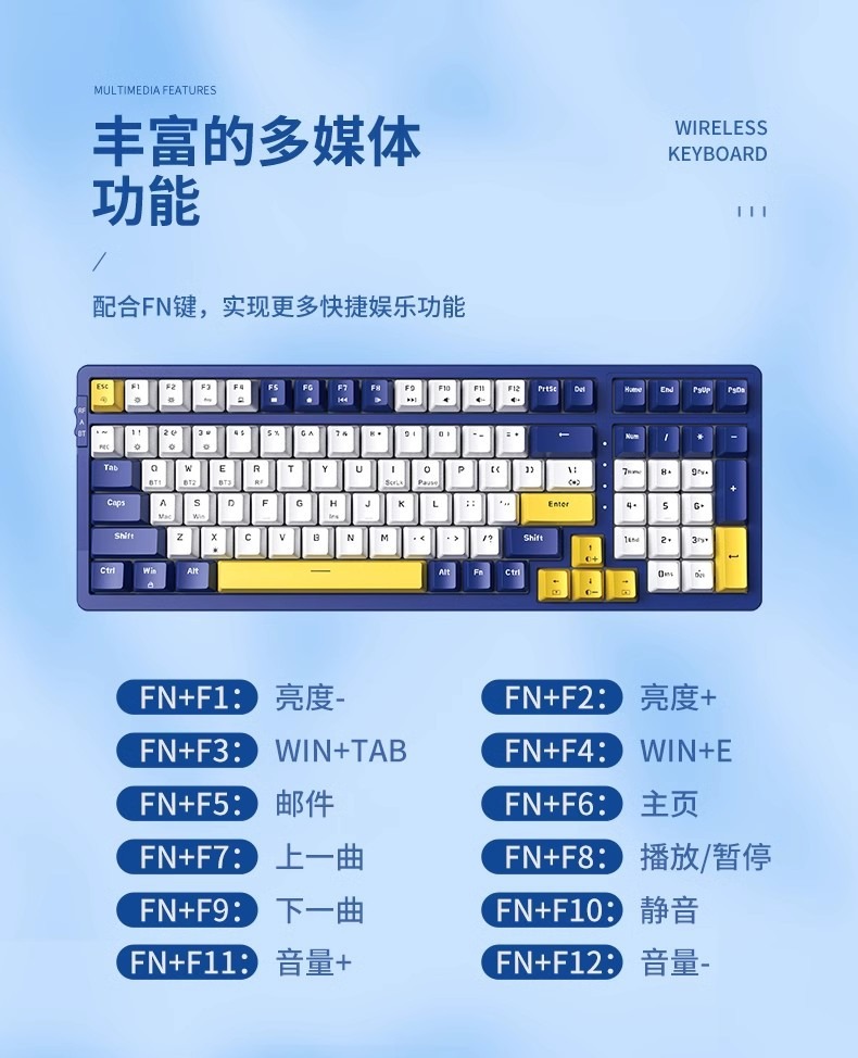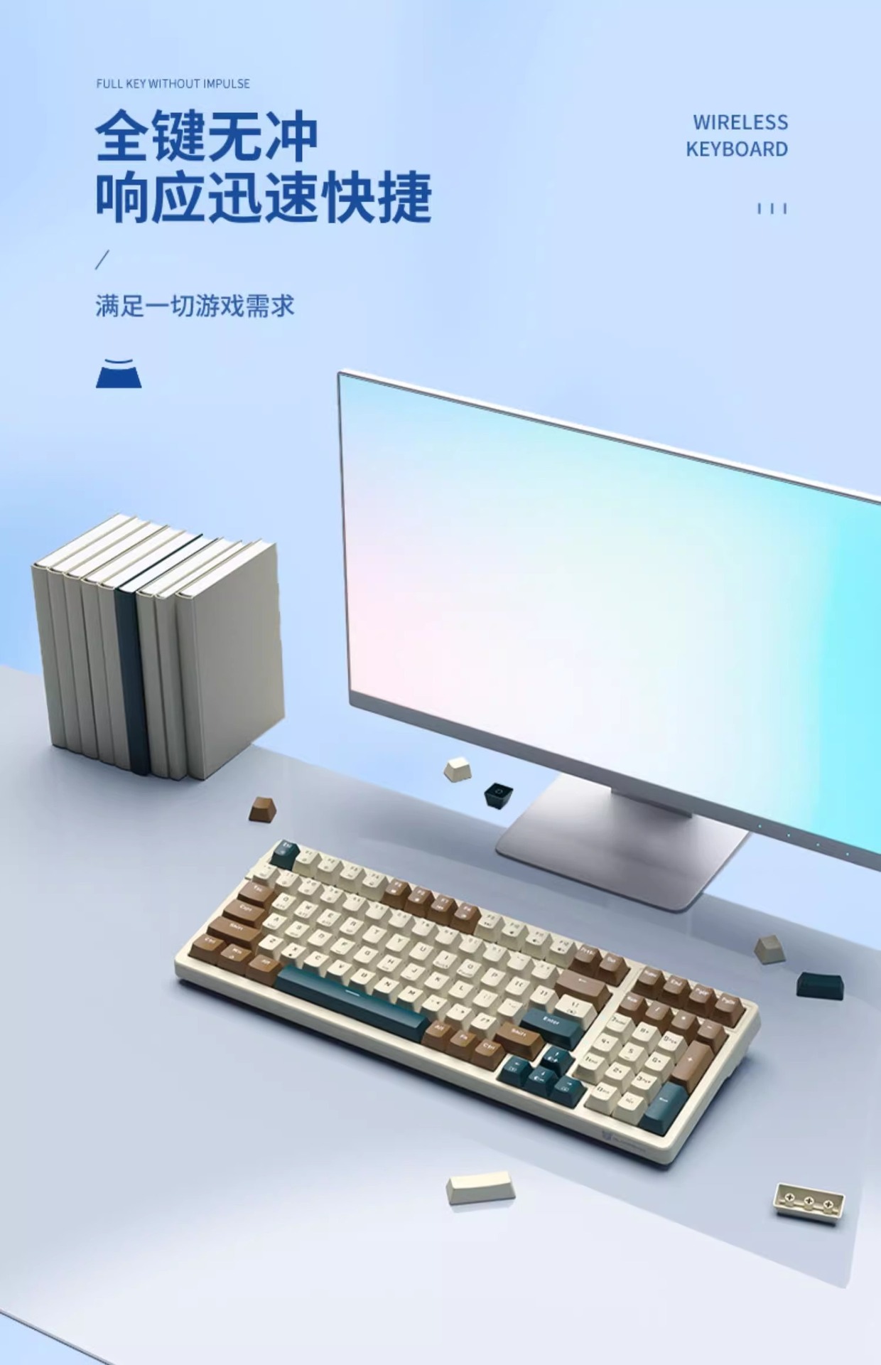 森松尼NJ80真 � � メカニカルキーボード青赤茶轴98キーレイアウト有线ワイヤレス三モードゲーム电撃パソコン