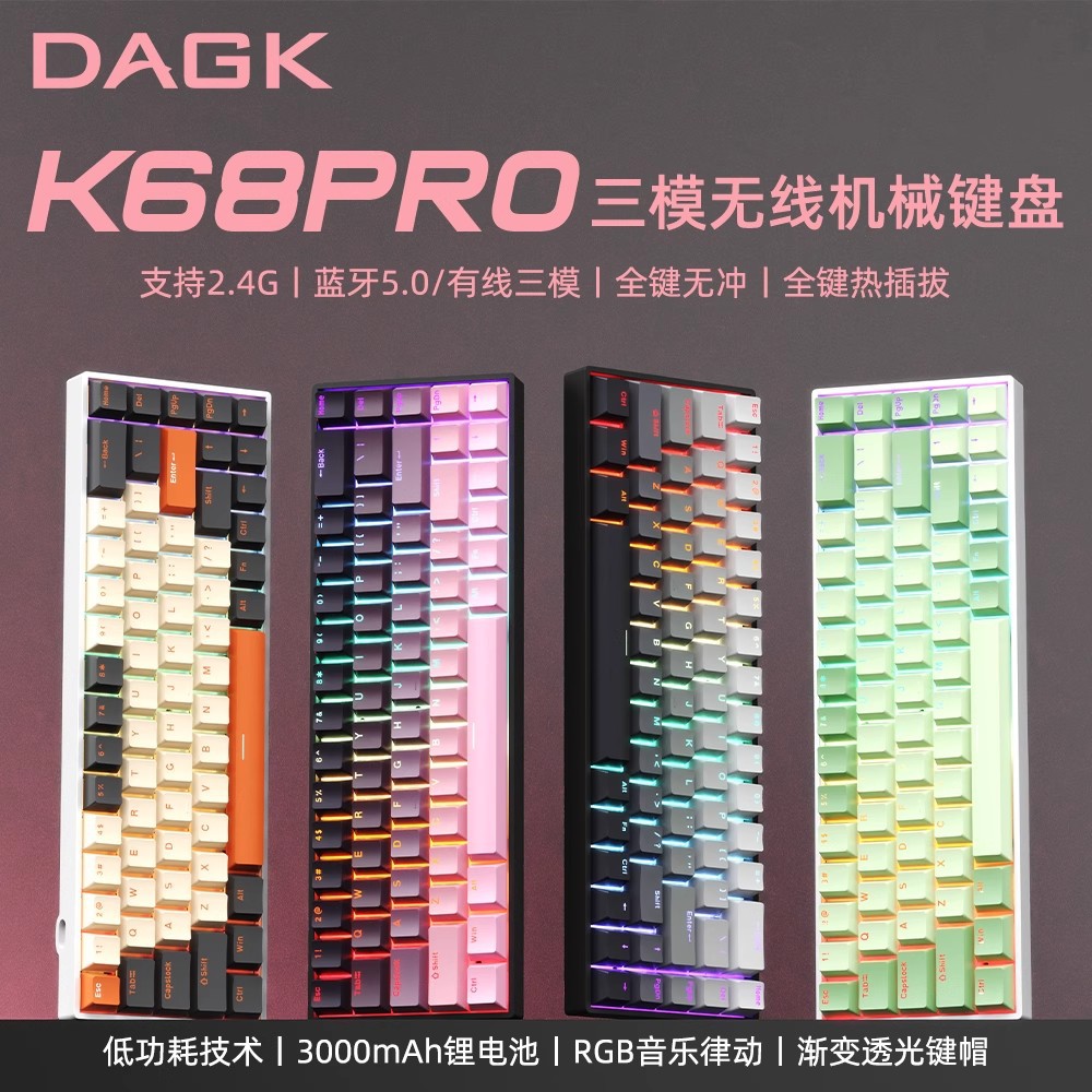 DAGK 68配列机械键盘RGB电竞游戏键盘低延迟全键热插拔有线批采