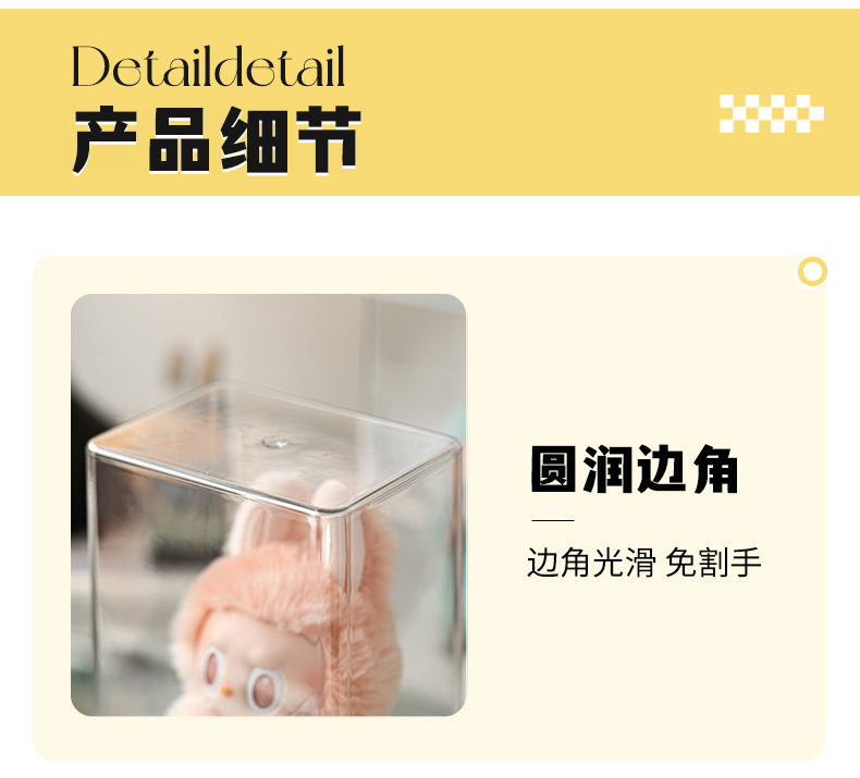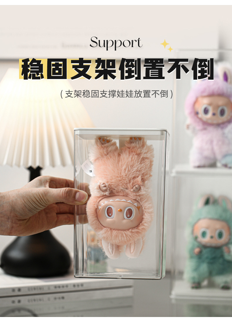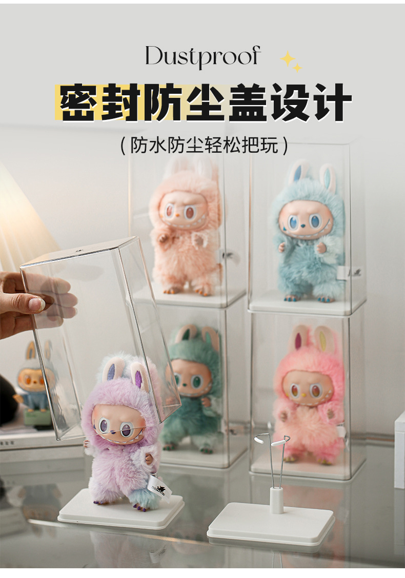 labubu展示盒透明防尘罩拉布布搪胶娃公仔泡泡玛特手办固定展示柜
