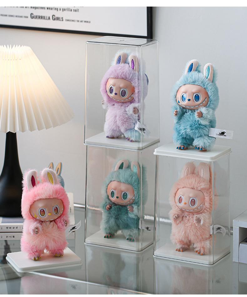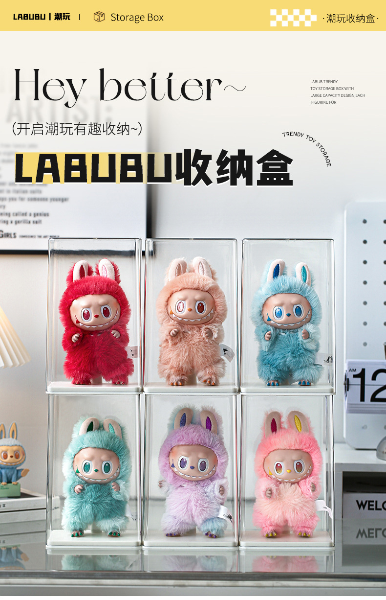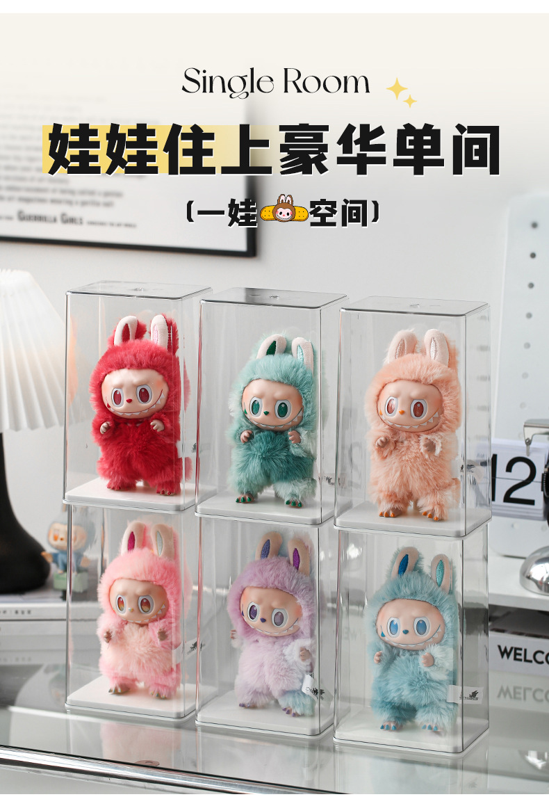 labubu展示盒泡泡玛特毛绒公仔玩偶透明防尘盒子拉布布手办收纳盒