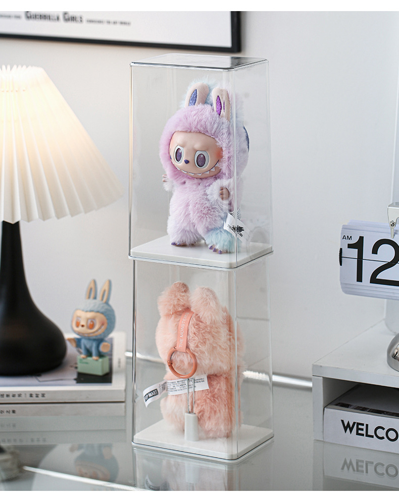 labubu玩偶收纳盒可叠加防尘保护壳拉布布搪胶娃娃玩偶支架展示盒
