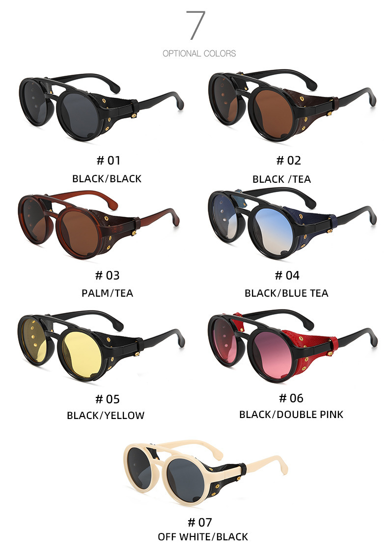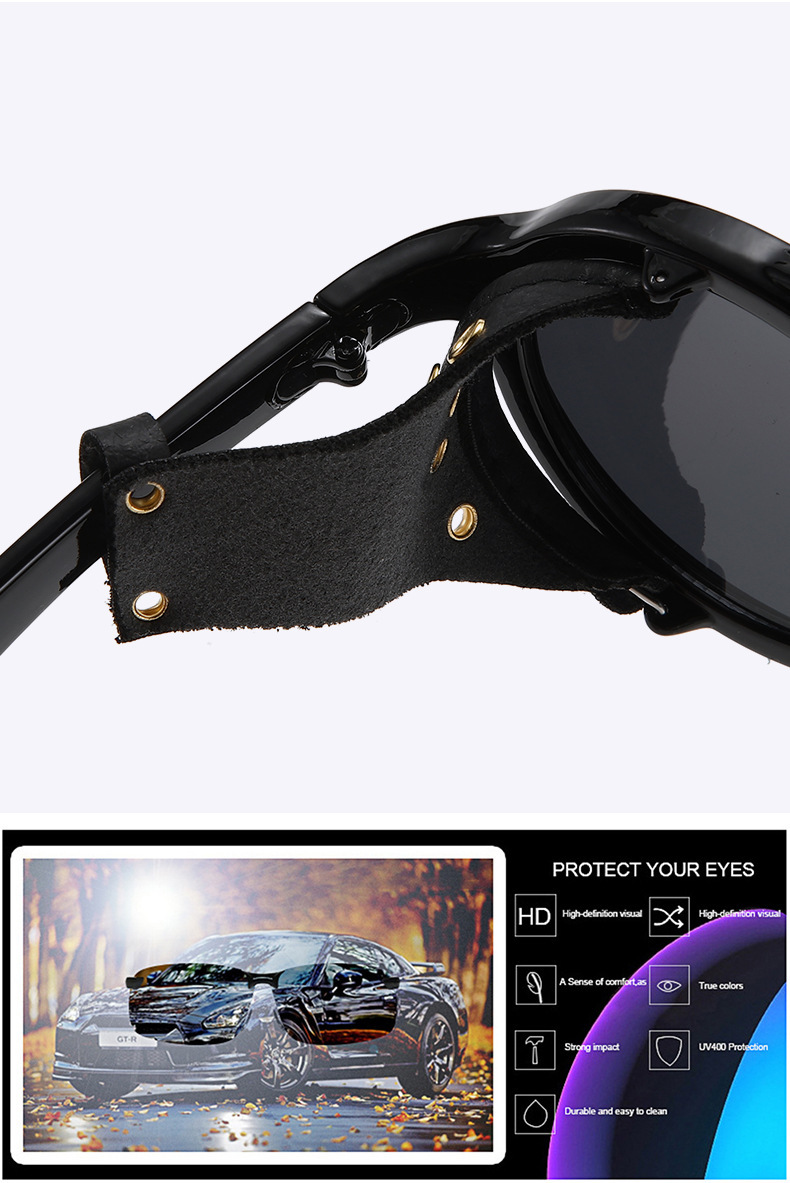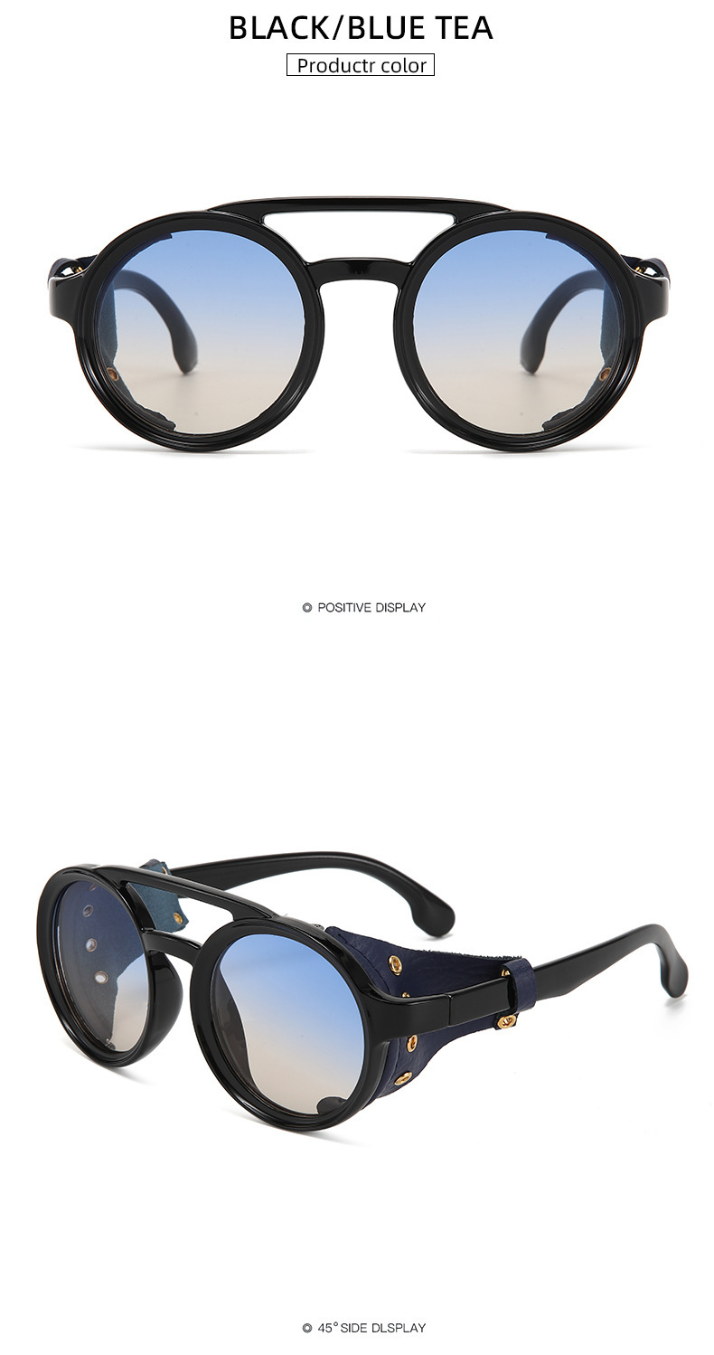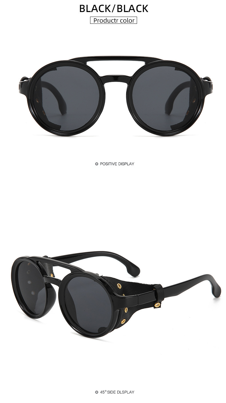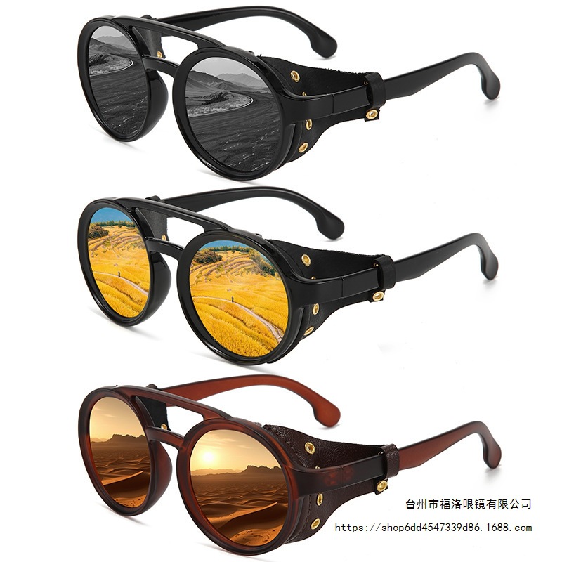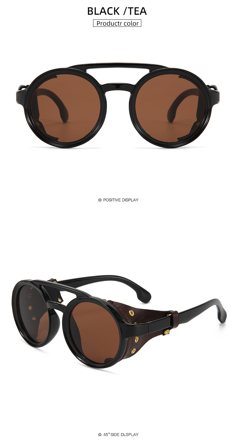 ヨーロッパとアメリカのスチームパンクラウンド防風サングラスメンズレトロレザーサングラスインターネット有名人オートバイライディング防塵メガネ