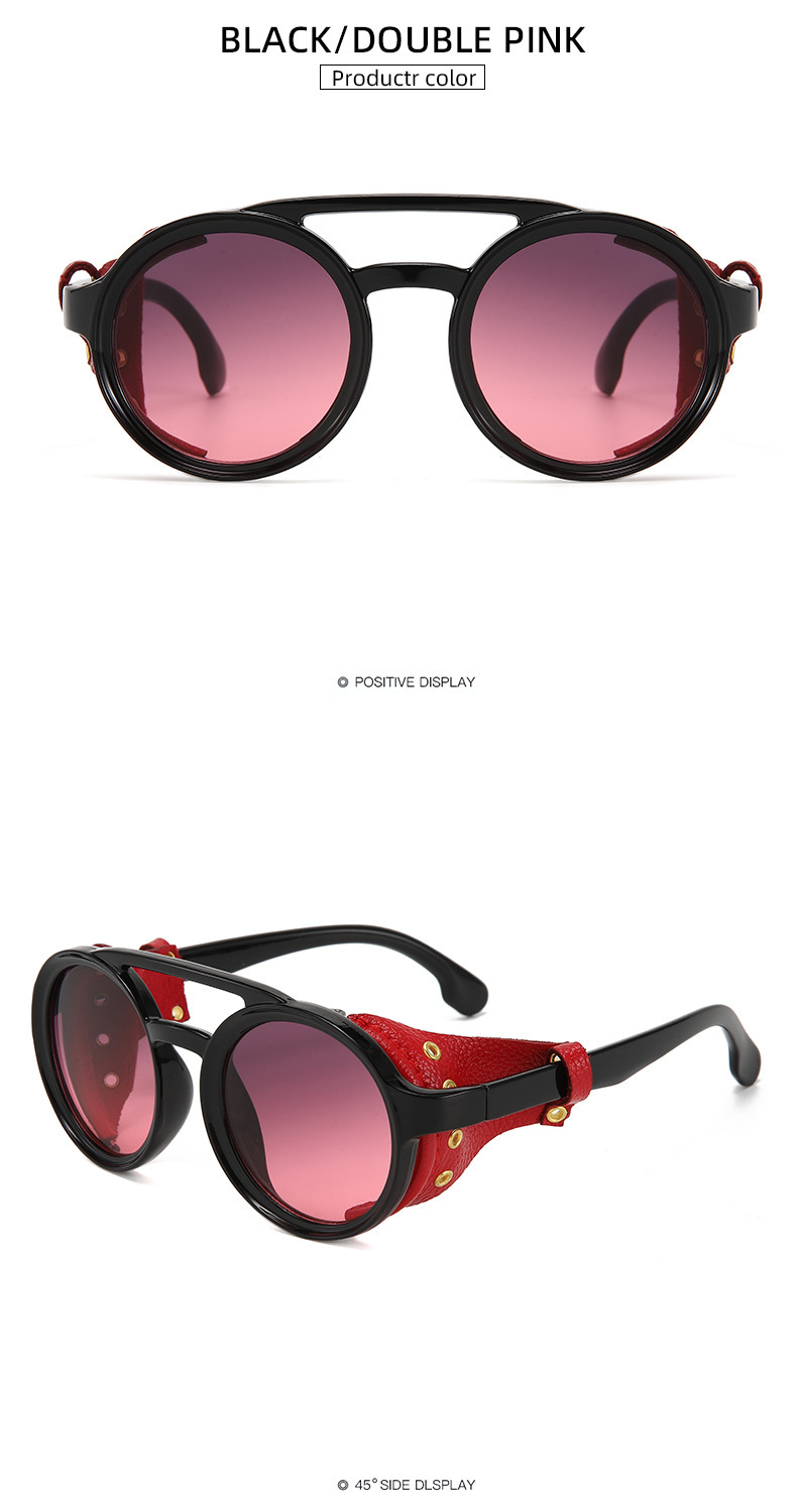 朋克风太阳镜墨镜男高级感女显脸小炫彩圆框潮流炫酷带皮太阳眼镜