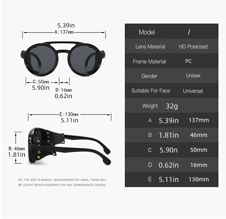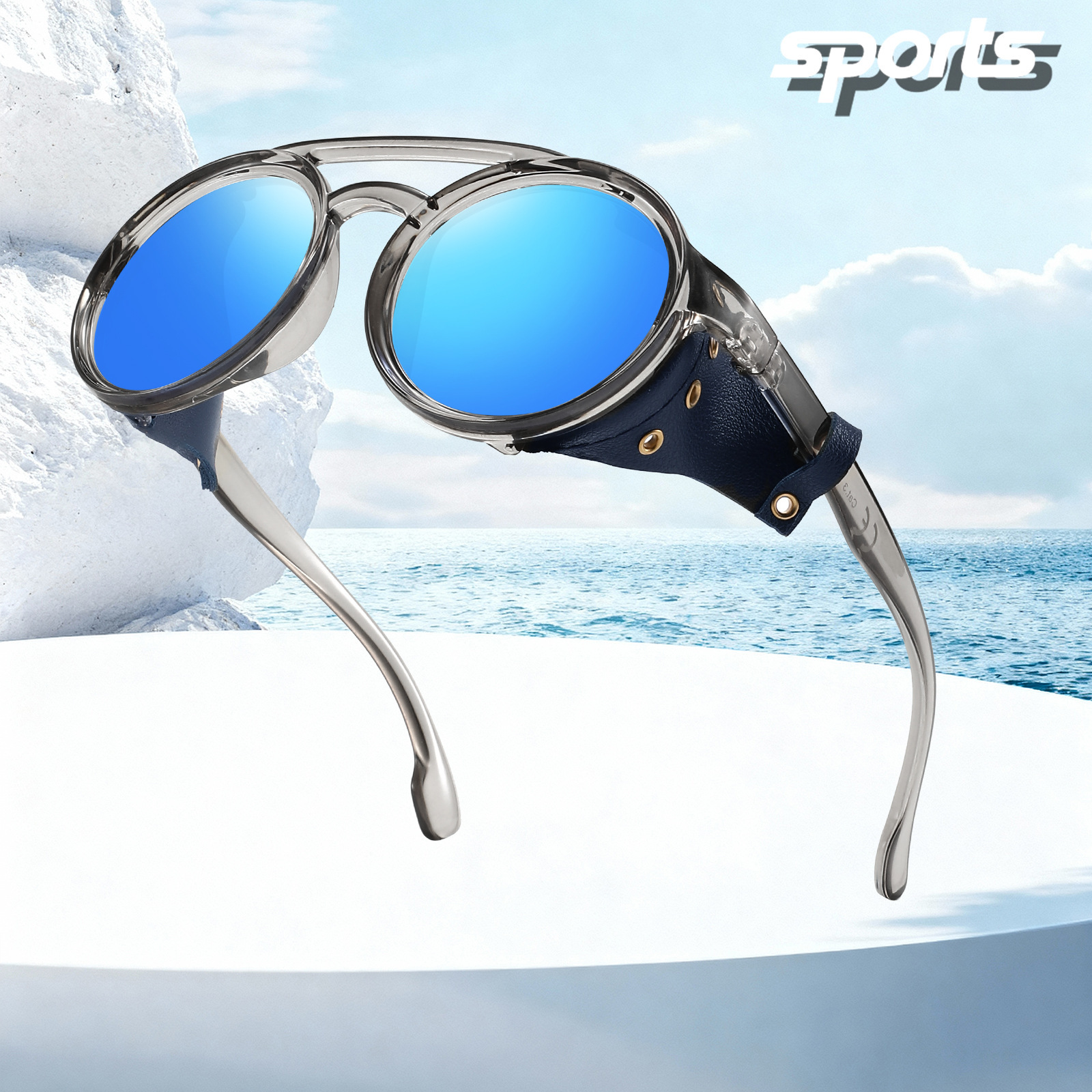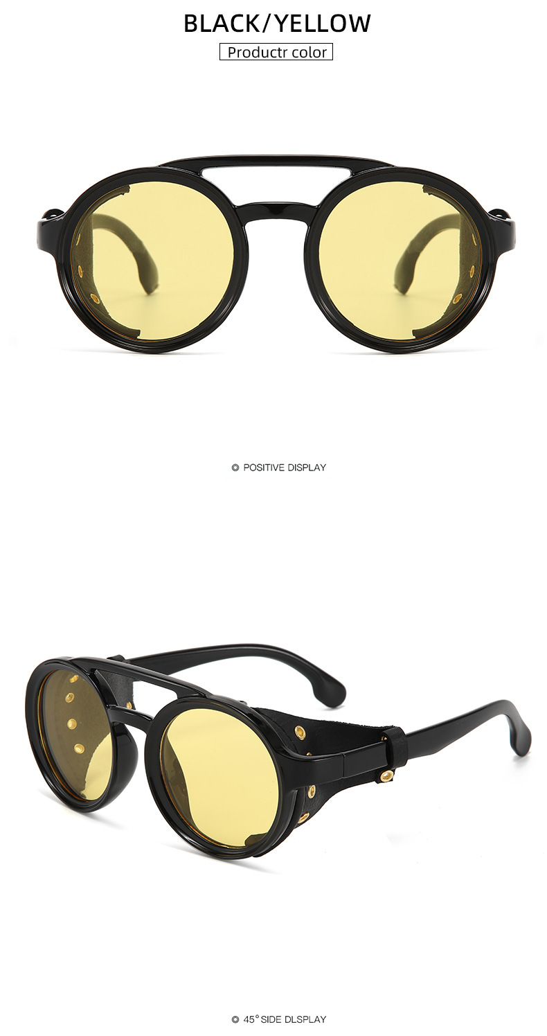 スチームパンクスタイルのラウンドラージフレームサングラス、男性と女性用、トレンディなアウトドアサイクリング、登山、運転、ヒップホップディスコサングラス