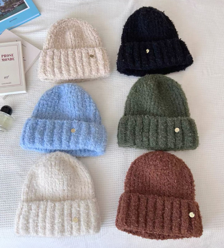 羊毛混纺毛线帽子女冬季加厚毛线帽户外防风骑车护耳帽显脸小冷帽
