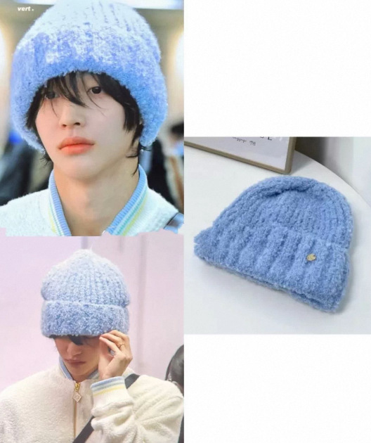 颜色 朴元彬蓝色针织帽