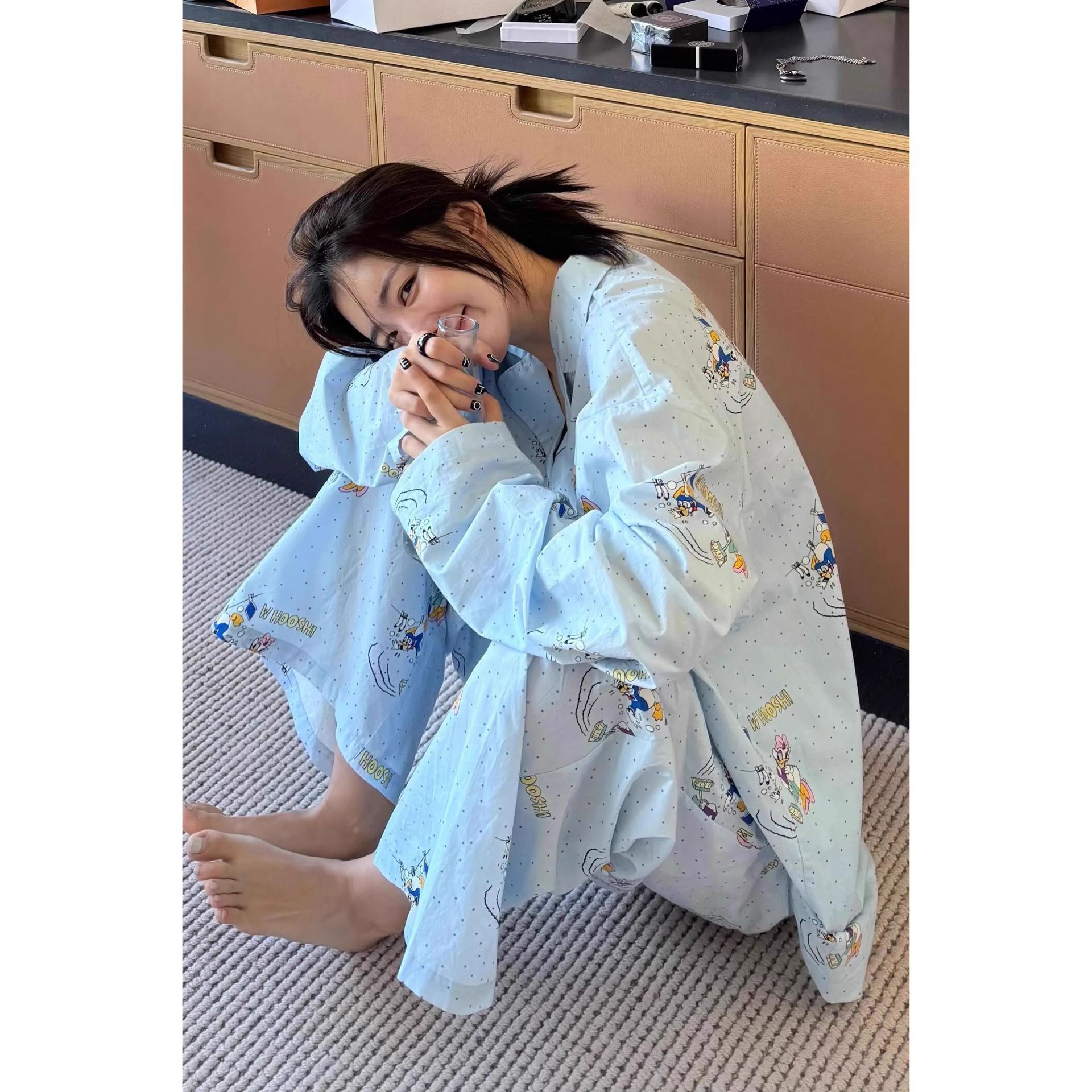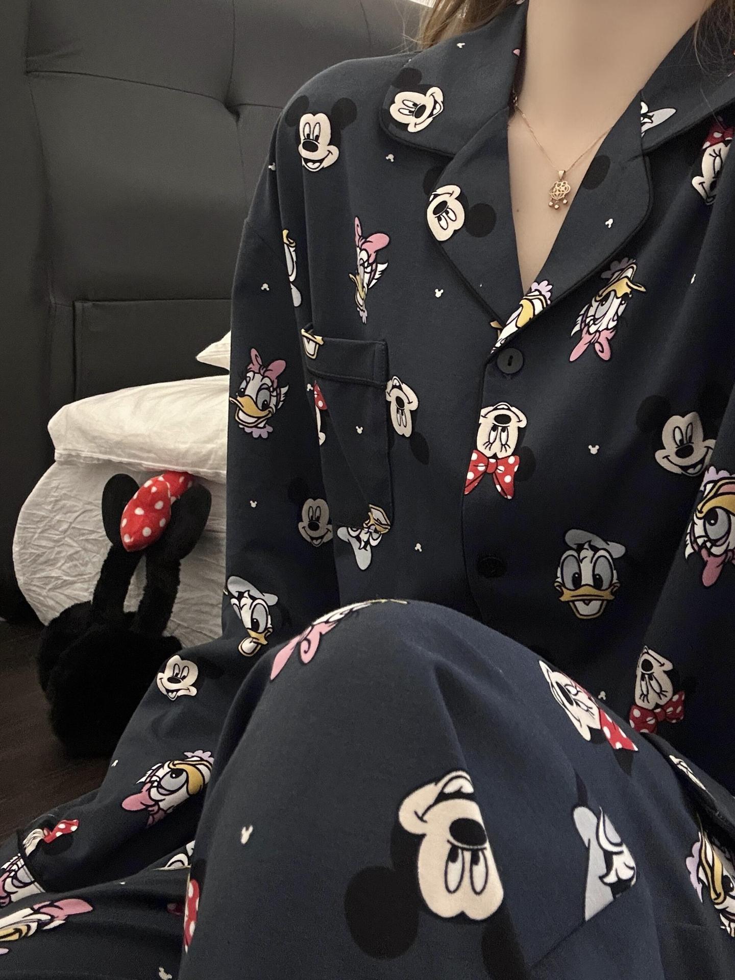 ins韩版卡通睡衣女春秋季长袖套装大码外贸跨境家居服新款可外穿