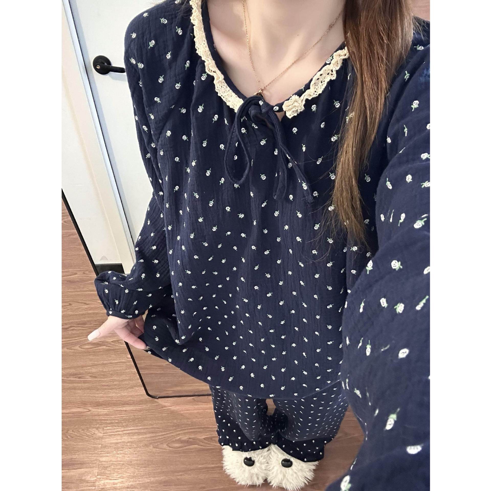 法式碎花睡衣女春秋季长袖套装高级感云朵棉家居服可外穿跨境批发